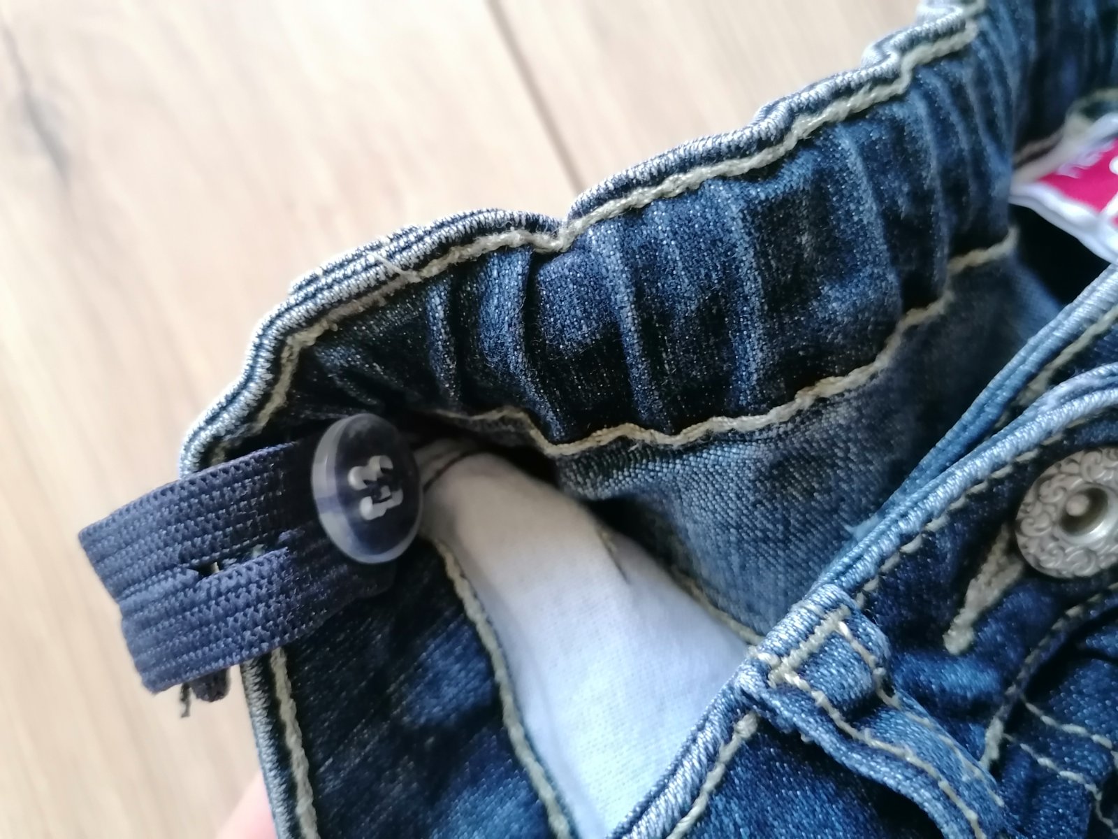 Výborný nosený stav, stredne hrubé, dĺžka bočná 85cm, dĺžka vnútorná 64cm, šírka v páse 30-34cm.