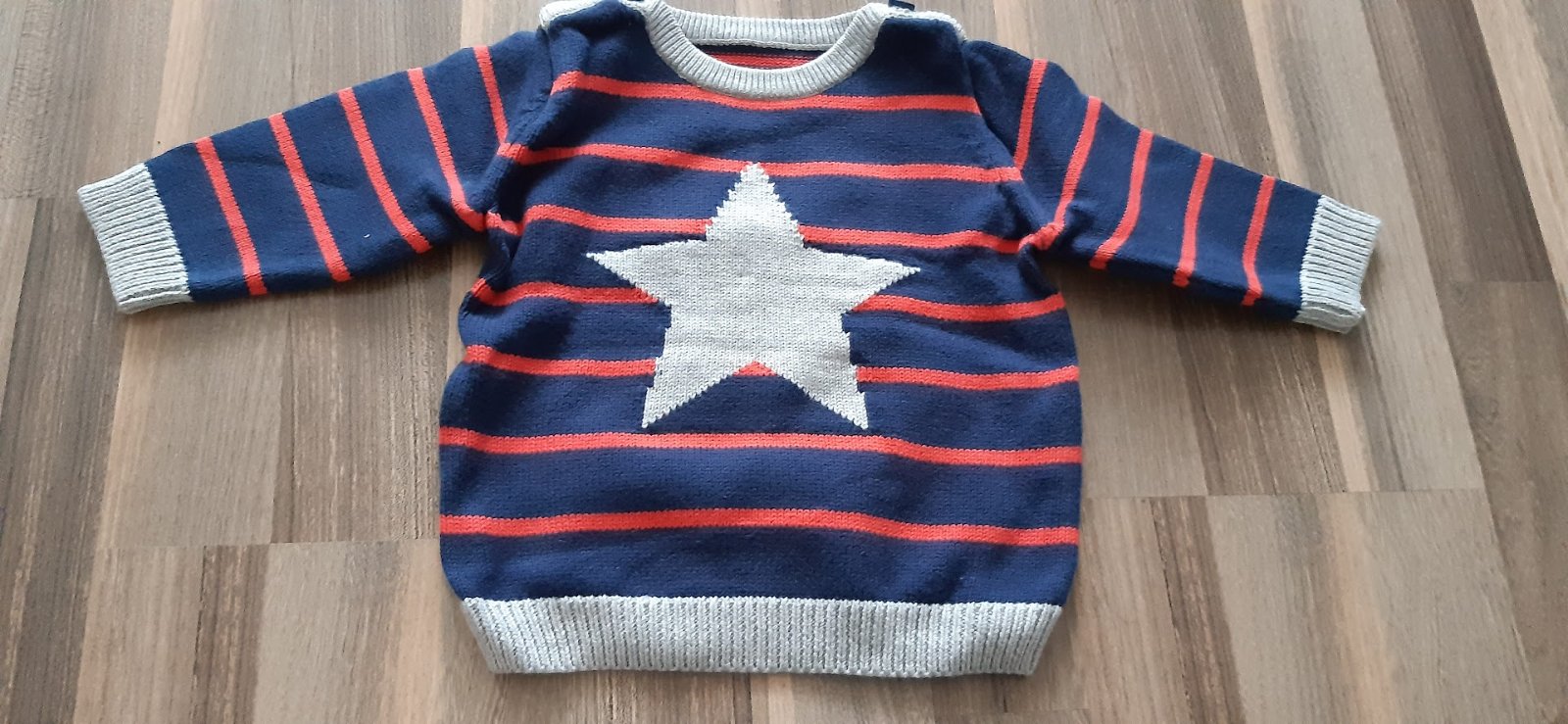 Ponúkam na predaj kvalitné modré rifle značka M&S, mäkký tenší materiál. Veľkosť: 6-9 mesiacov (74cm), zo skúseností aj 12 mesiacov. Sú súčasťou setu s krásnym pleteným pulóvrom (pásikavý s hviezdou) – je to skutočne mäkký, kvalitný a príjemný materiál Cena 4€/celý set.