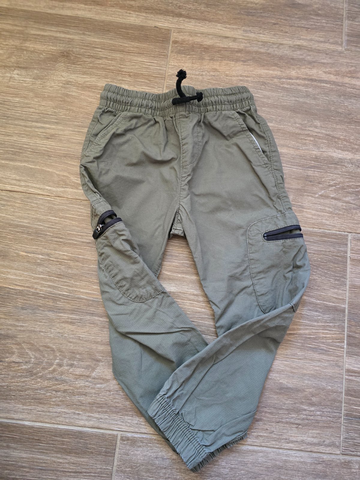 Super na ihrisko do prírody, jemne šuchnute kolienka , veľkosť udáva vyrobcom 110, ale sú menšie Pás 2x24cm Vnútorná dĺžka 40cm
