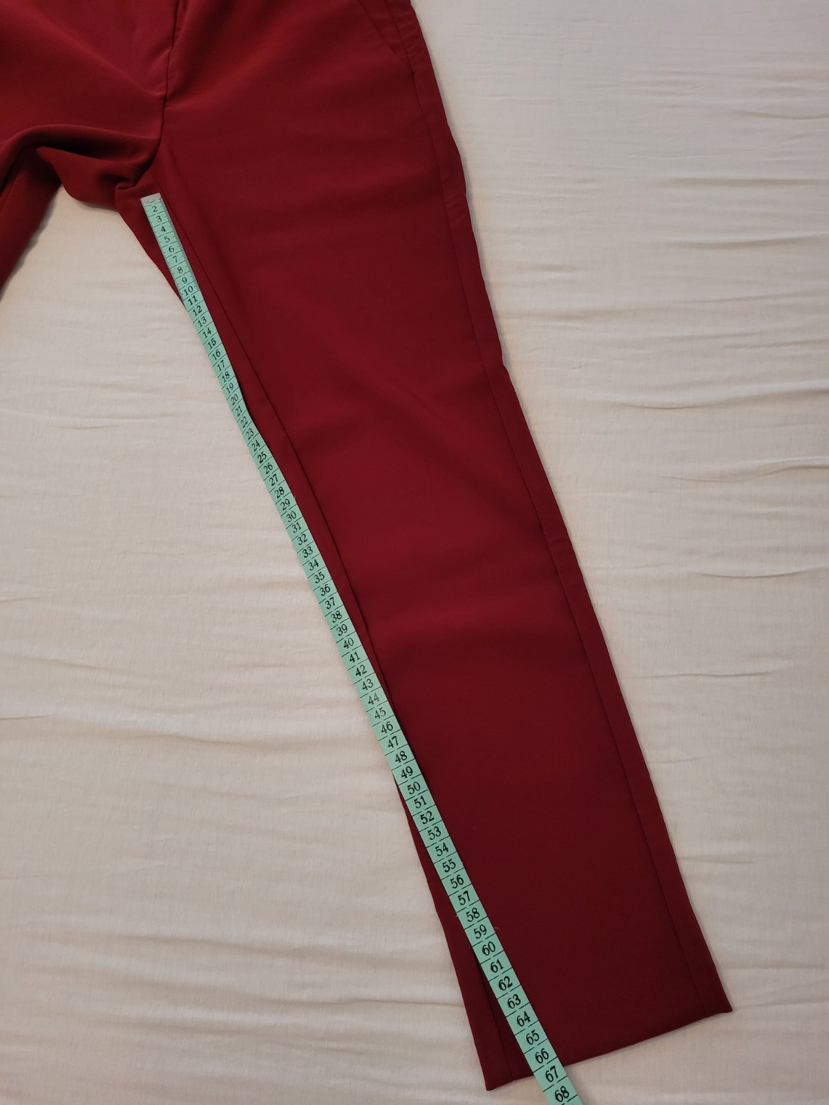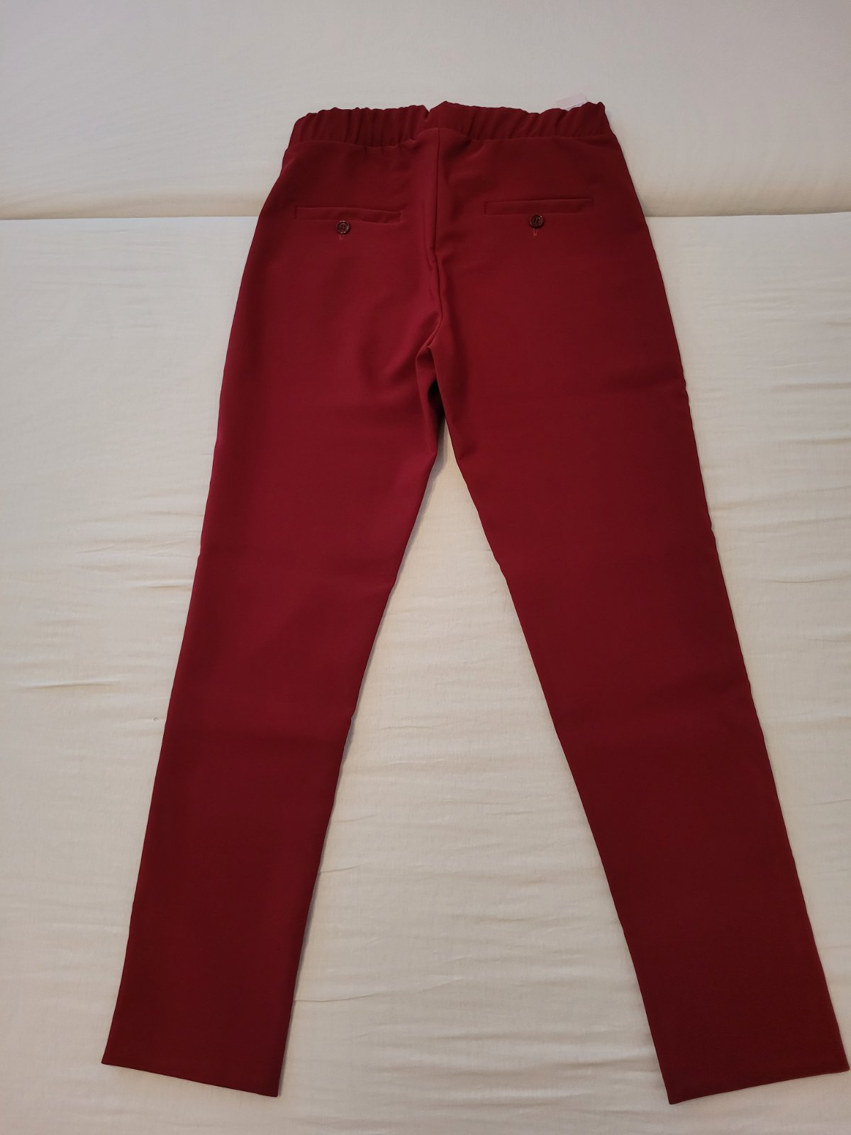 Predam nosene tmavocervene nohavice vel. S. Zodpovedaju aj 36/38, nakolko su elasticke a prijemne sa nosia. Dlzka je 7/8.