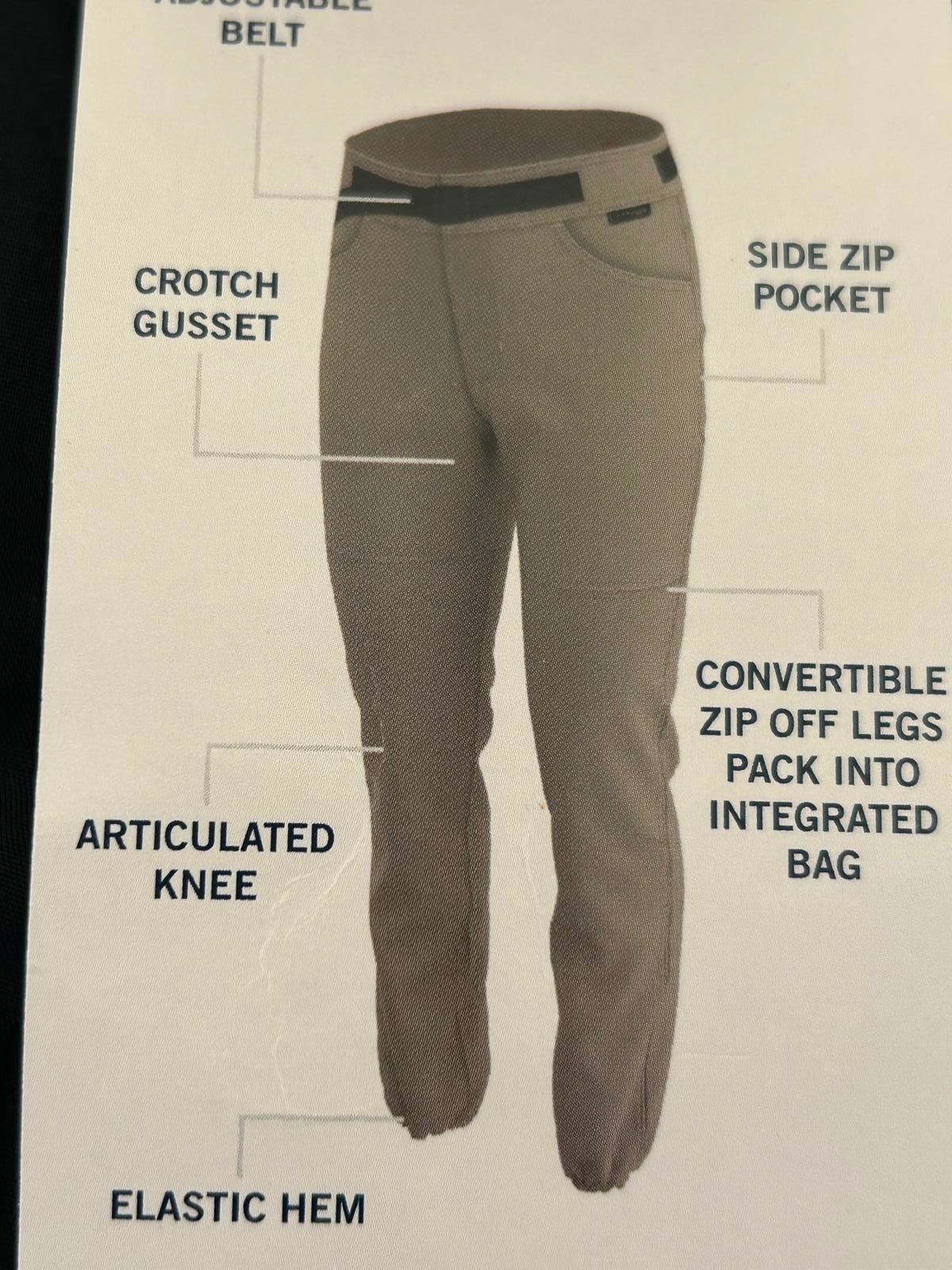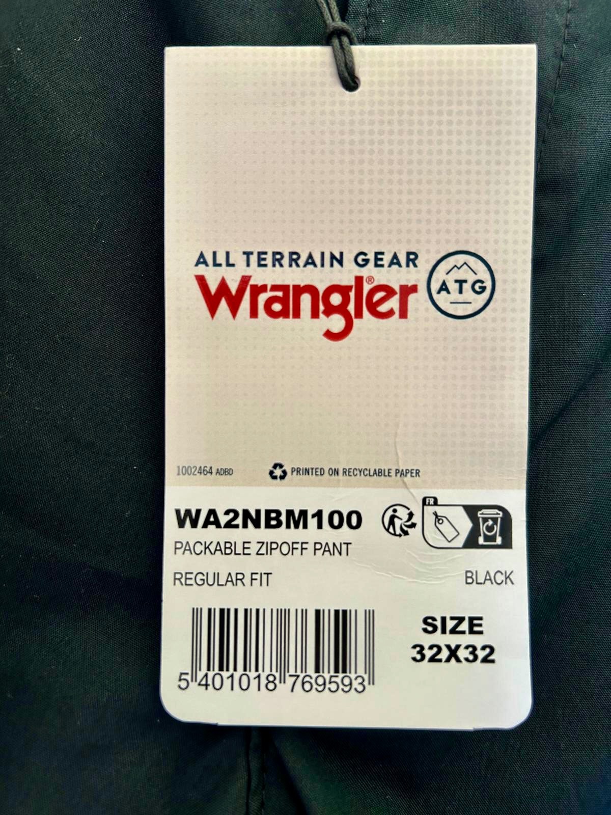 Predám pánske kvalitné outdoorové nohavice zn.WRANGLER ATG, z ktorých sa podľa potreby dajú uzipnúť nad kolenami a zmeniť na krátke šortky. Značka ATG znamená All Terrain Gear (v preklade „výstroj do každého terénu“). Ide o špecializovanú produktovú líniu zameranú na outdoorové aktivity, turistiku a funkčné využitie v prírode. Nohavice majú čierny opasok, funkčné bočné aj zadné vrecká, zadné vrecko v strede pása na zips. Na spodnej pravej nohavici je vrecko na zips, v ktorom je ďaľšie vrecko na zips.