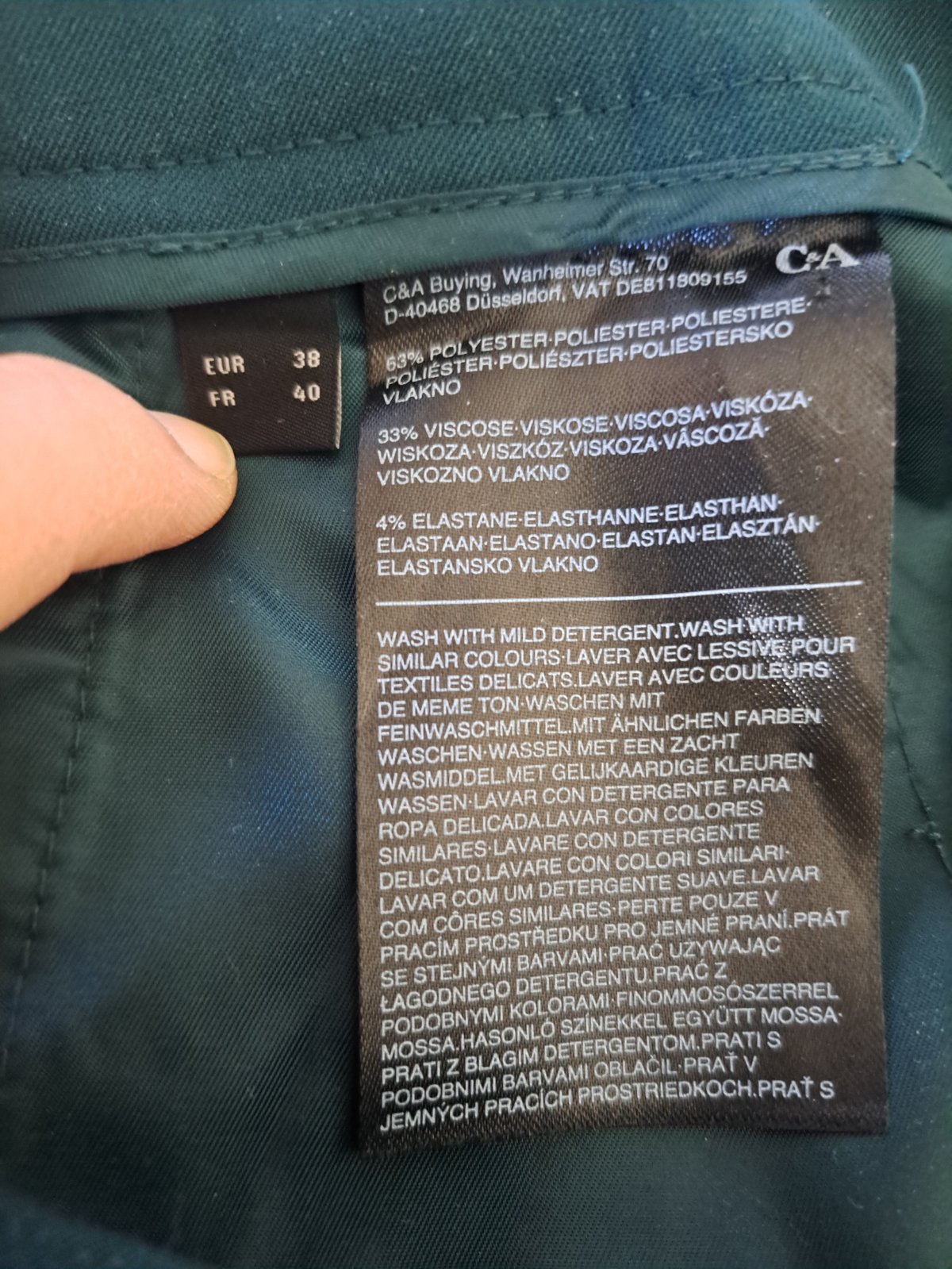 Nenosené iba oprane zvonove nohavice, kúpila som pred tehotenstvom a teraz sú mi už veľké. Písané 38nale sedia skôr na 40. Treba ožehlit.
