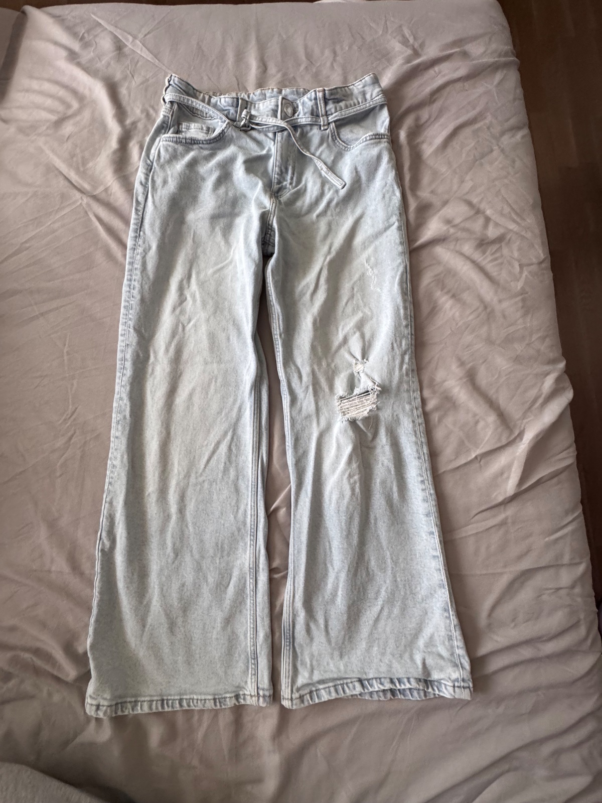 Rifle, po jednom dieťatku, top stav. Celková dĺžka 88,5cm, dĺžka od rozkroku 68,5cm, rifle sú elastické a pás je regulovateľný
