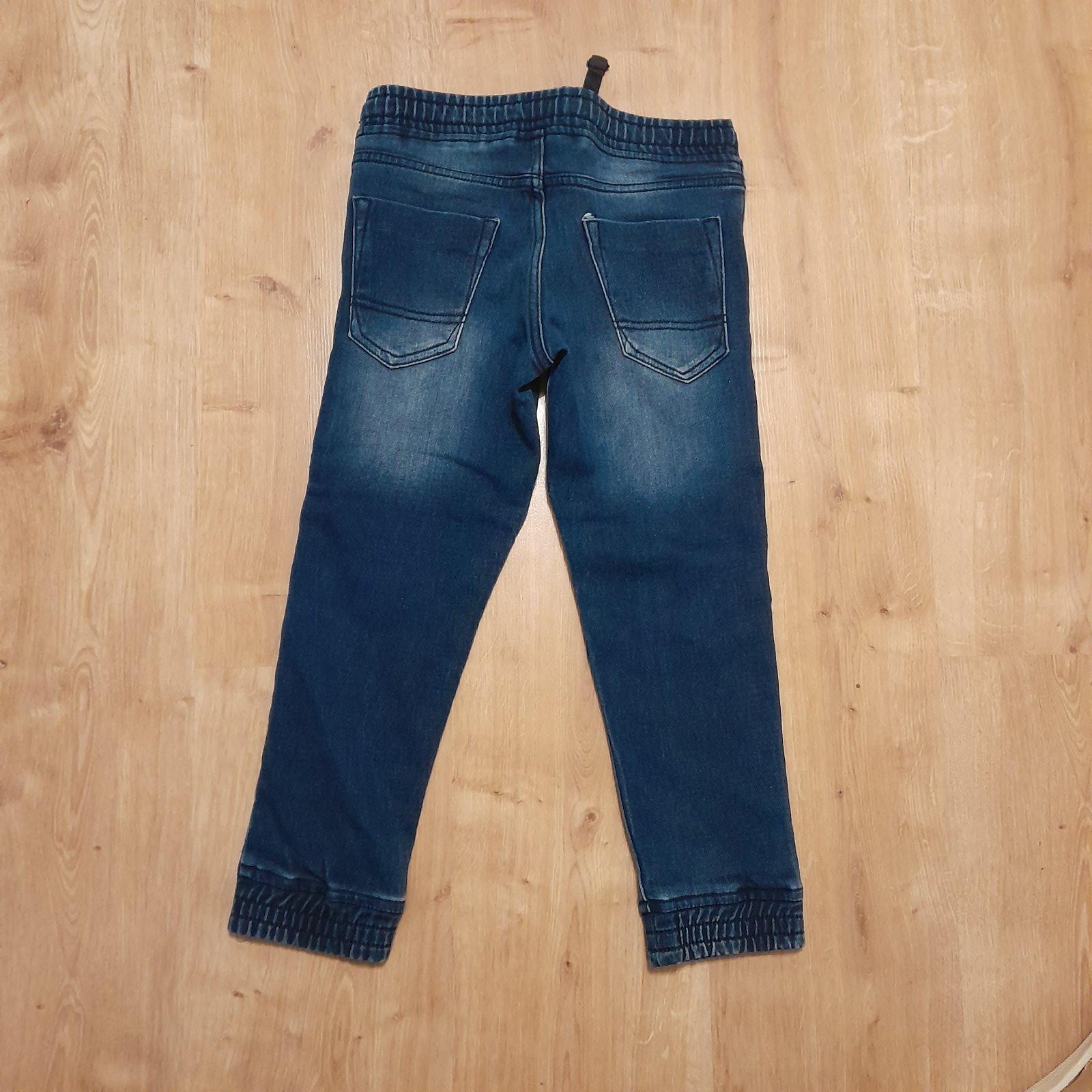 Rifle po mojom synovi, veľkosť 128, ale je to úzky strih. Vnútri je nastaviteľný pás. Na jednom kolene malá dierka.