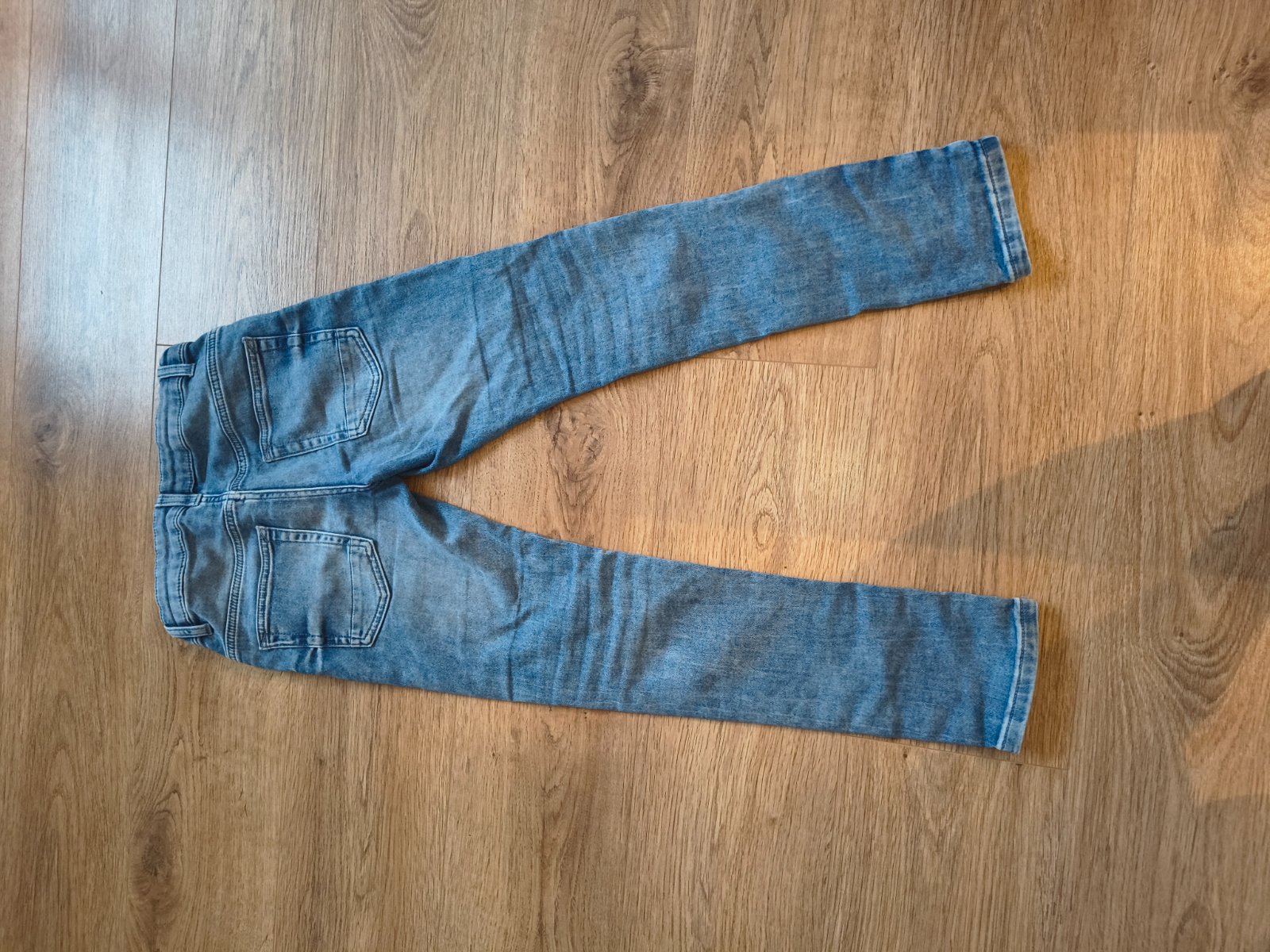 Chlapčenské rifle, vôbec nenosené, pás pevný, veľ. 146. Materiál: 70 % bavlna, 30 % polyester. Dĺžka: 91,5 cm Vnútorná dĺžka: 69,5 cm Šírka: 34,5cm Stehno: 23 cm Predný sed: 22 cm Zadný sed: 32 cm...
