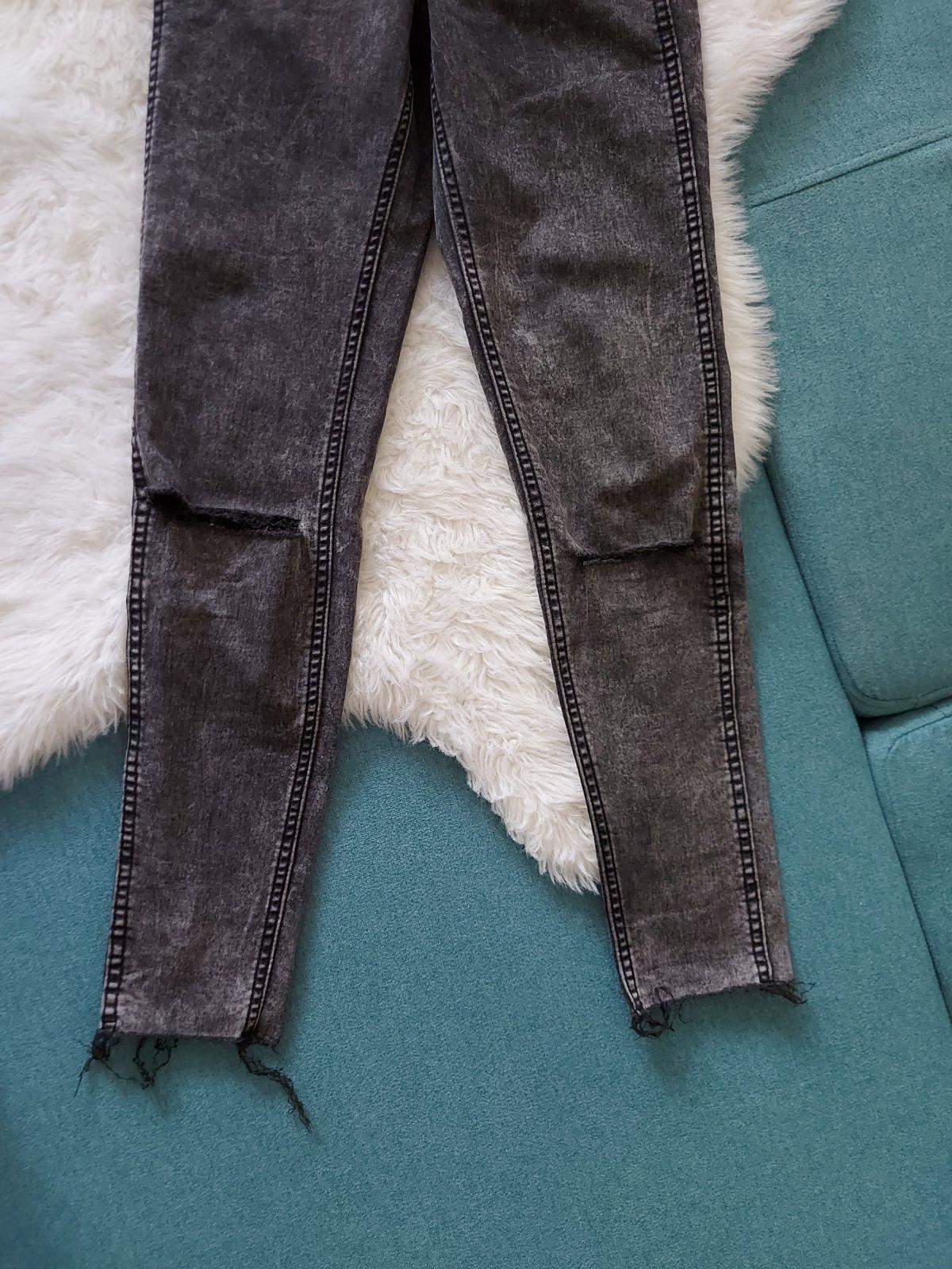 Rifle na vysokú postavu, dĺžka riflí je až 105cm, dolu sú rázporky a tým sú rifle zaujímavé, veľkosť 34 alebo XS, sú elastické, dĺžku viem na želanie upraviť. Farba je sýto čierna, ani raz neobleče...