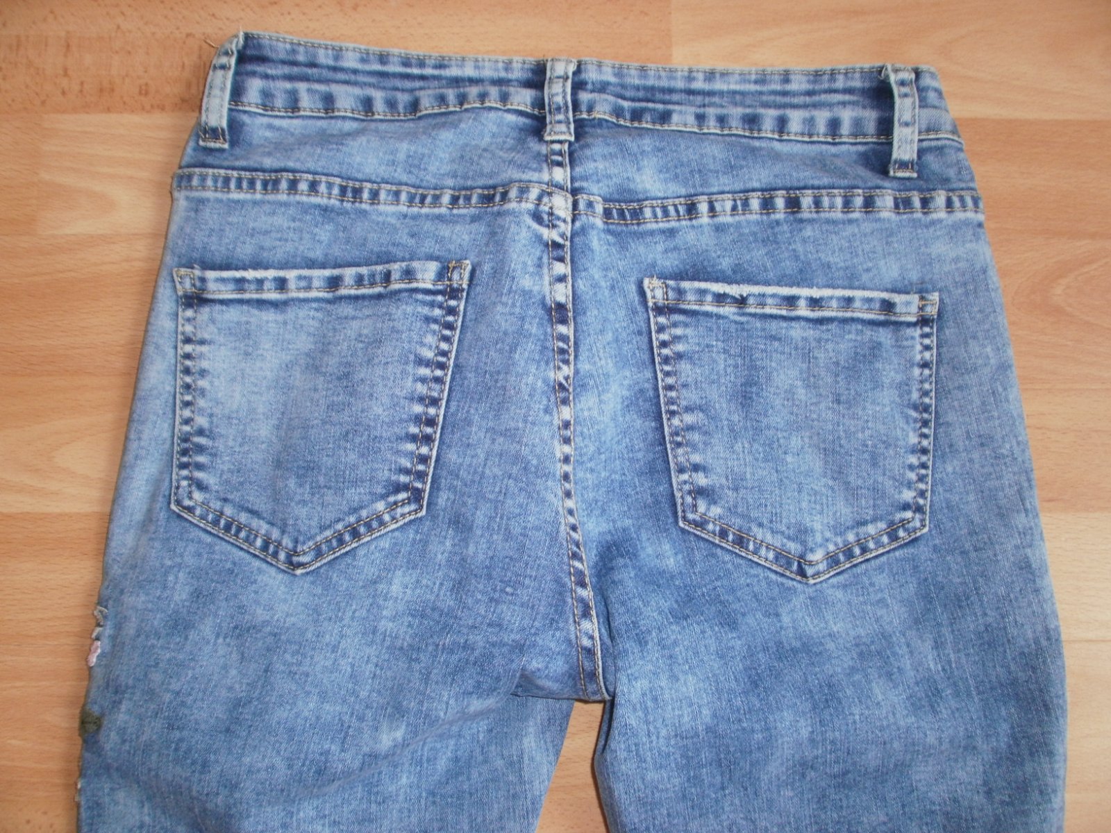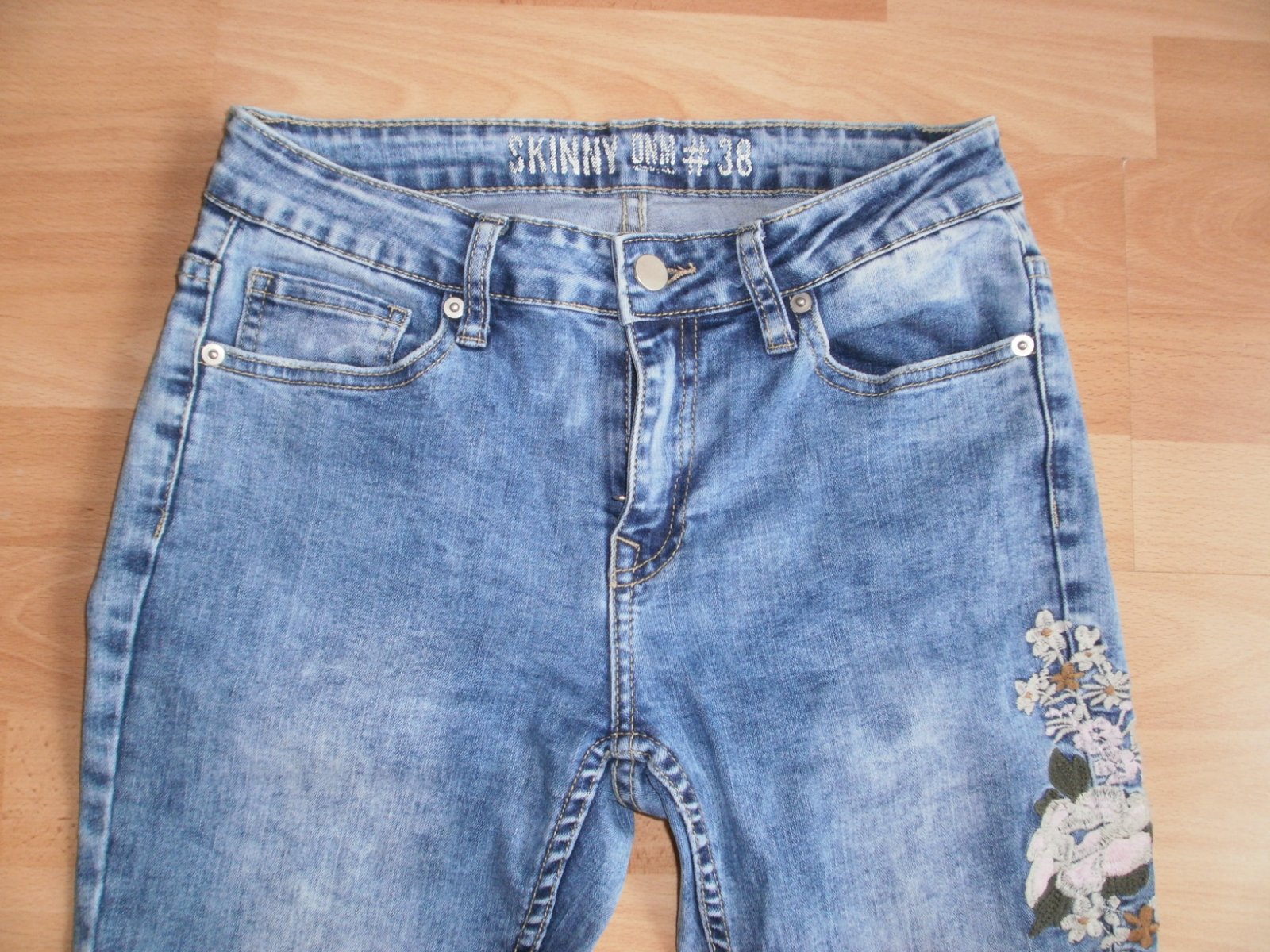 Rifle s výšivkami na stehnách