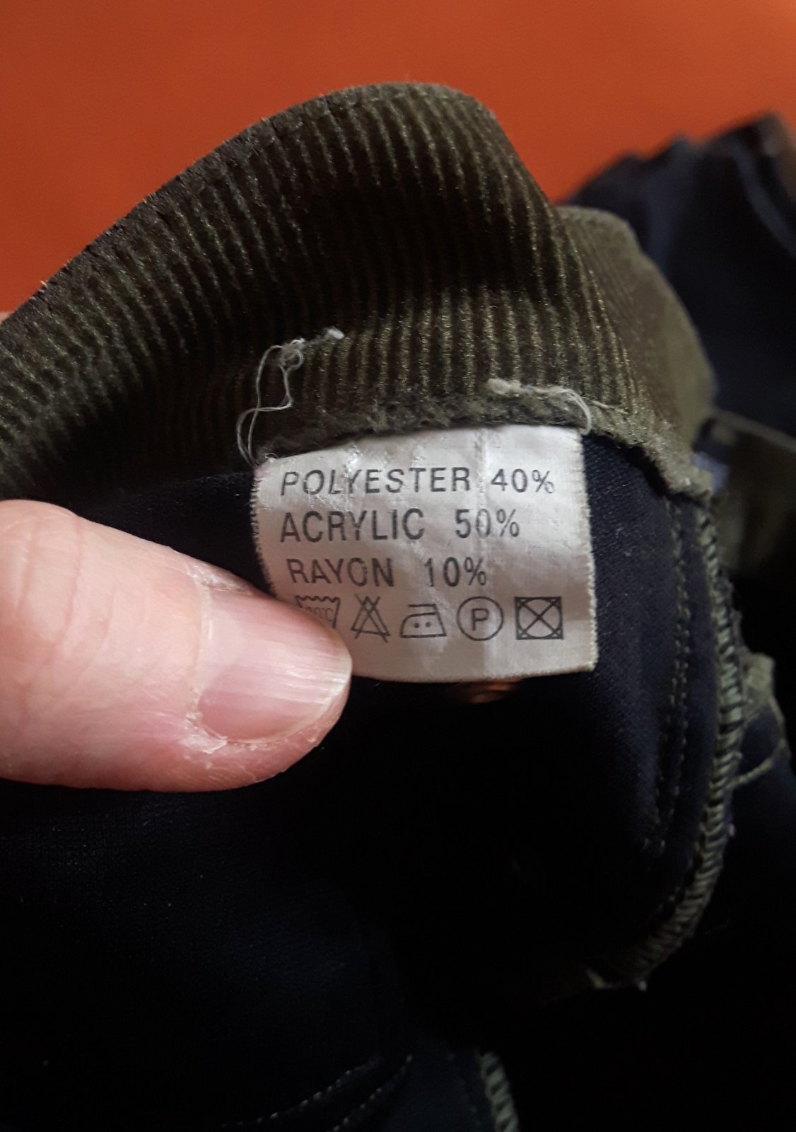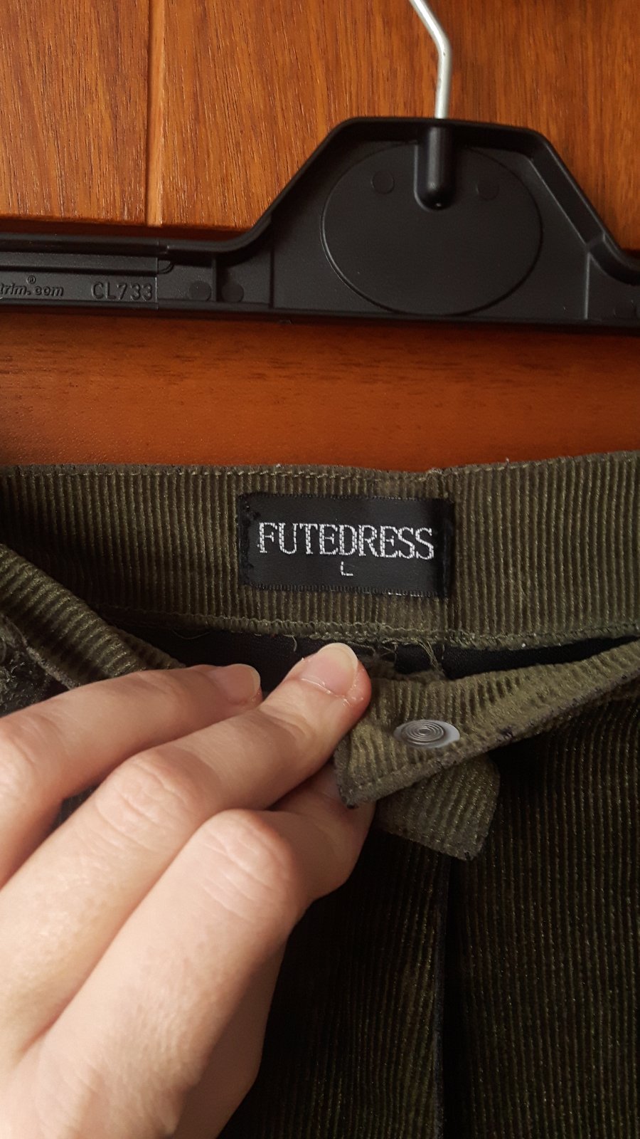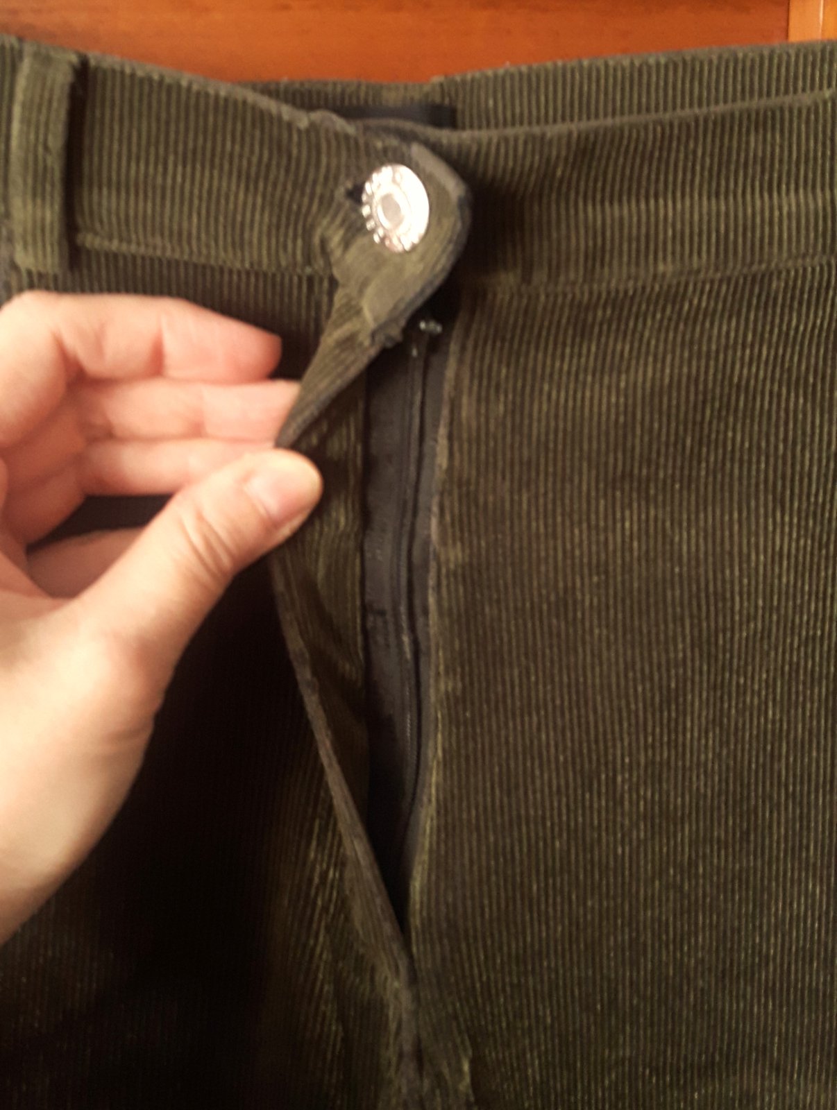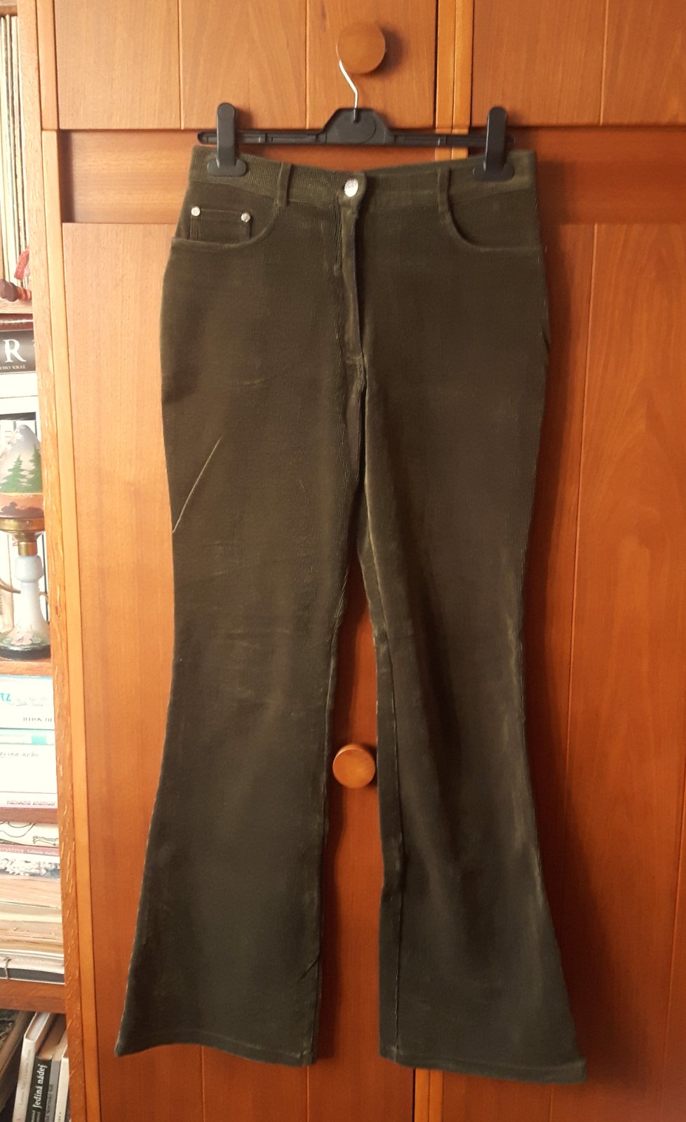 Zelené nohavice s imitáciou pracieho kordu. Dĺžka 102 cm a šírka v páse 35 cm. Veľkosť je udaná L, ale je to skôr M. Bez poškodení!