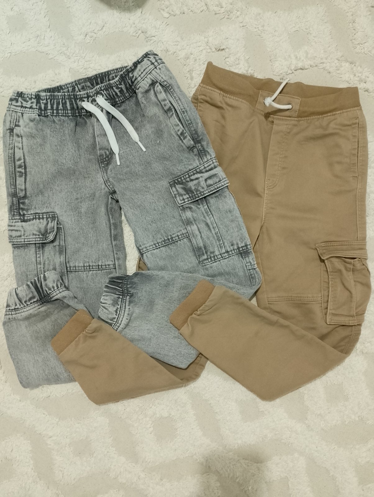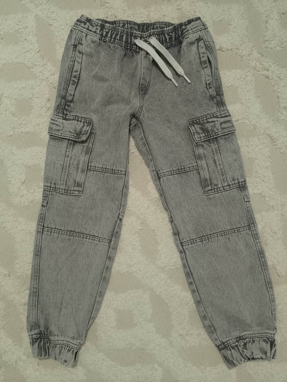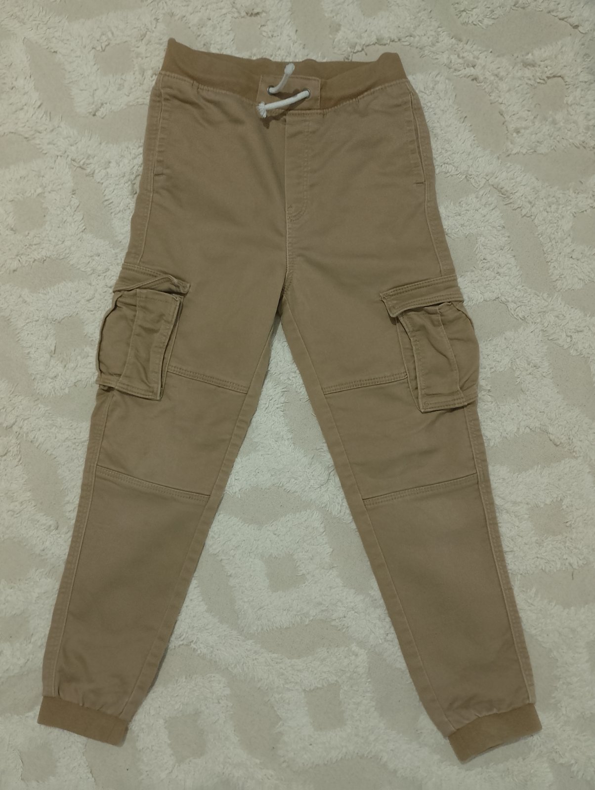 Kvalitné nenosené nohavice..písané 140,ale myslím,že kludne väčšie..bavlna,kupované v butiku-PC 990 SK! nemecká značka MILLS.. Dlžka 91cm pás 32 cm---na chudšieho chlapca..mám ešte jedny menšie..d...