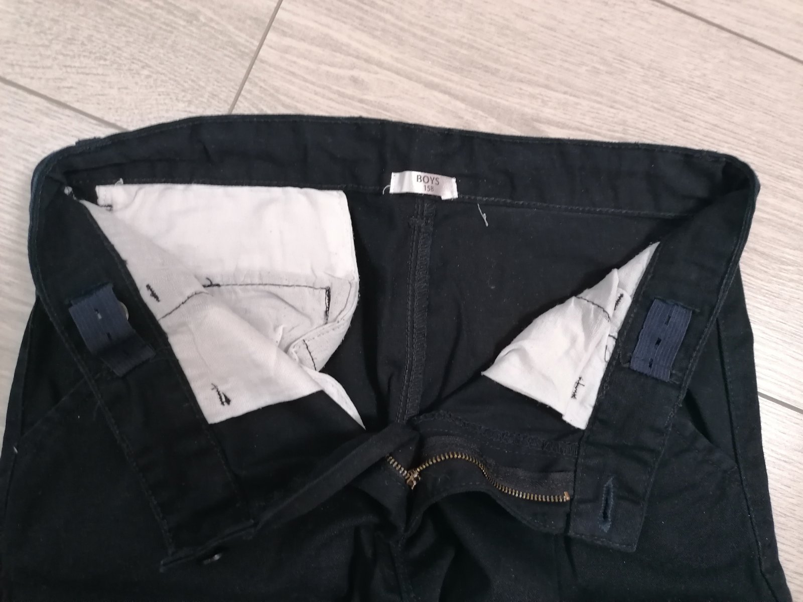 Zapinaju sa na gombik a zips a v pase maju regulacnu gumu.
