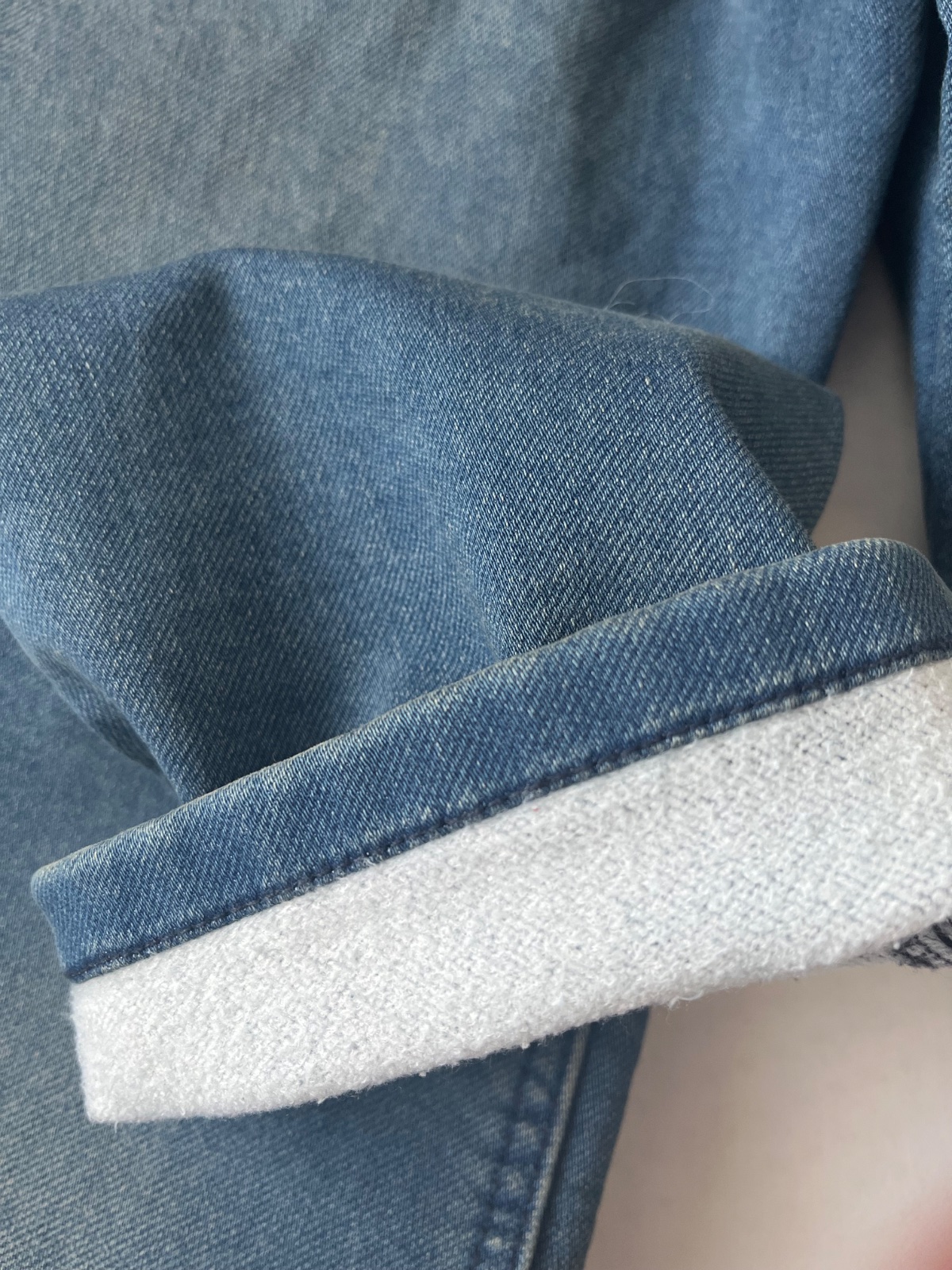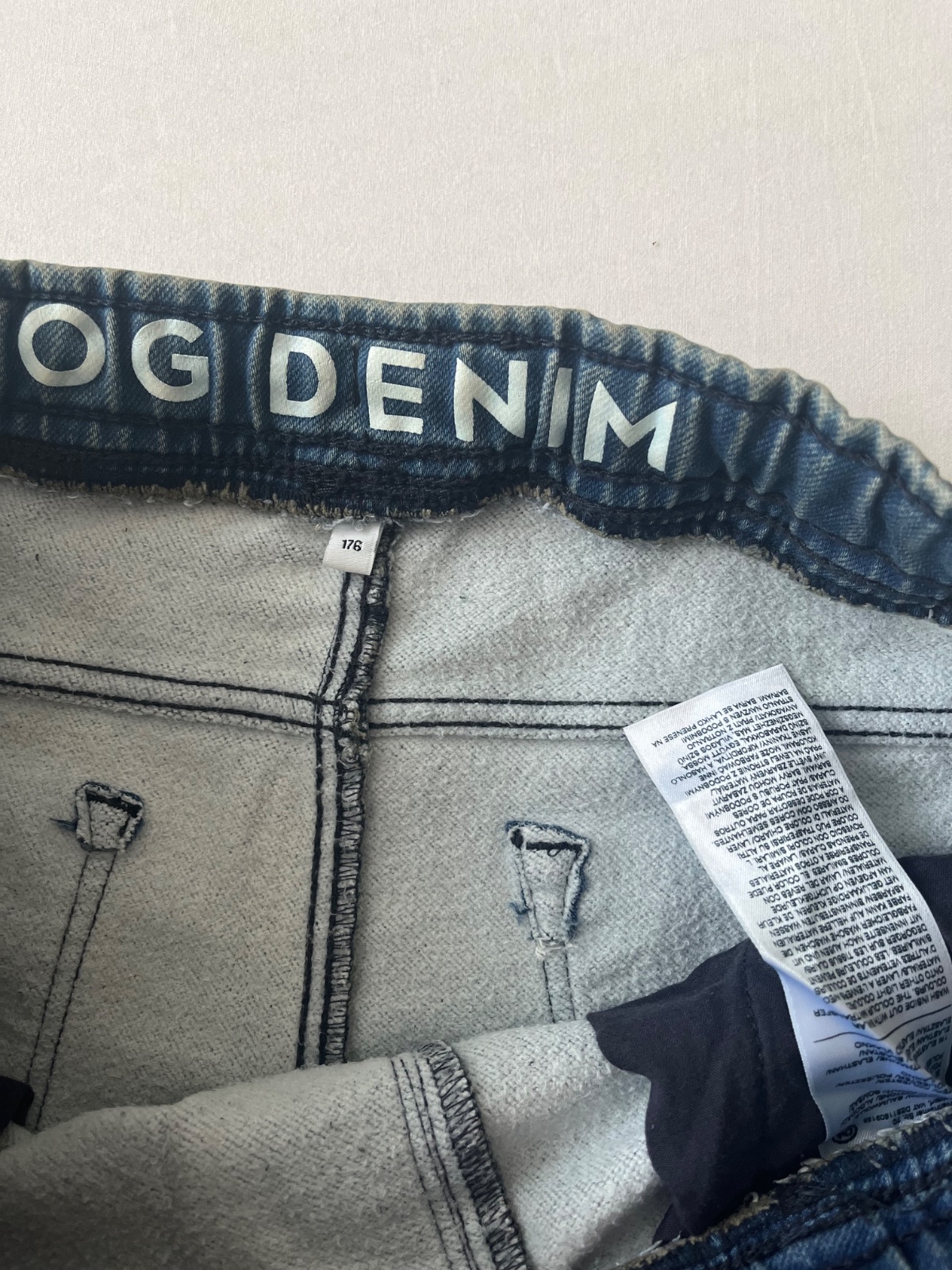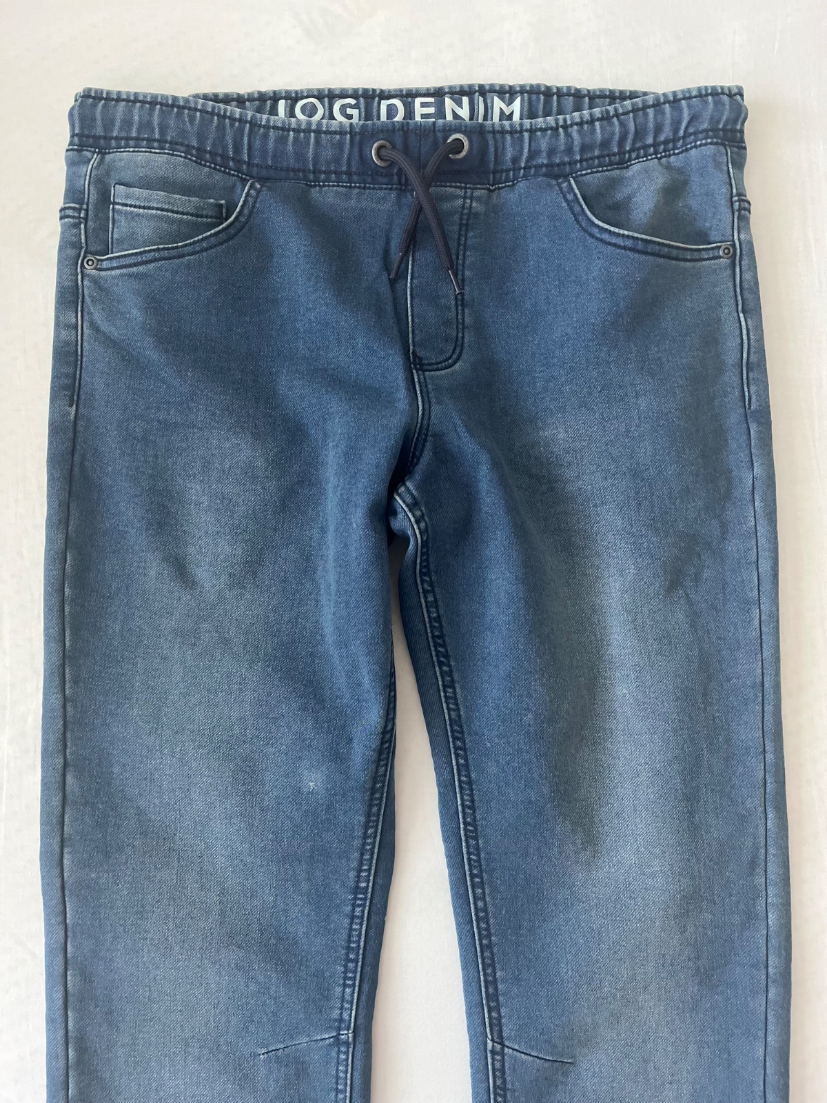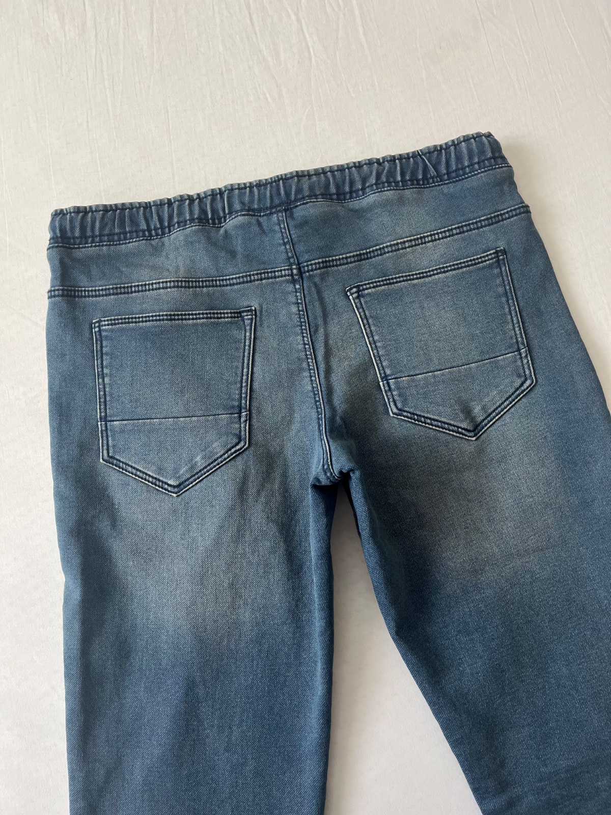 Zateplené rifle, podšité bavlnenou látkou so vzorom dinosaura, 100% stave. V páse funkčná gumička, pás vkľude 26cm natiahne sa aj do 34cm....dĺžka 69cm.