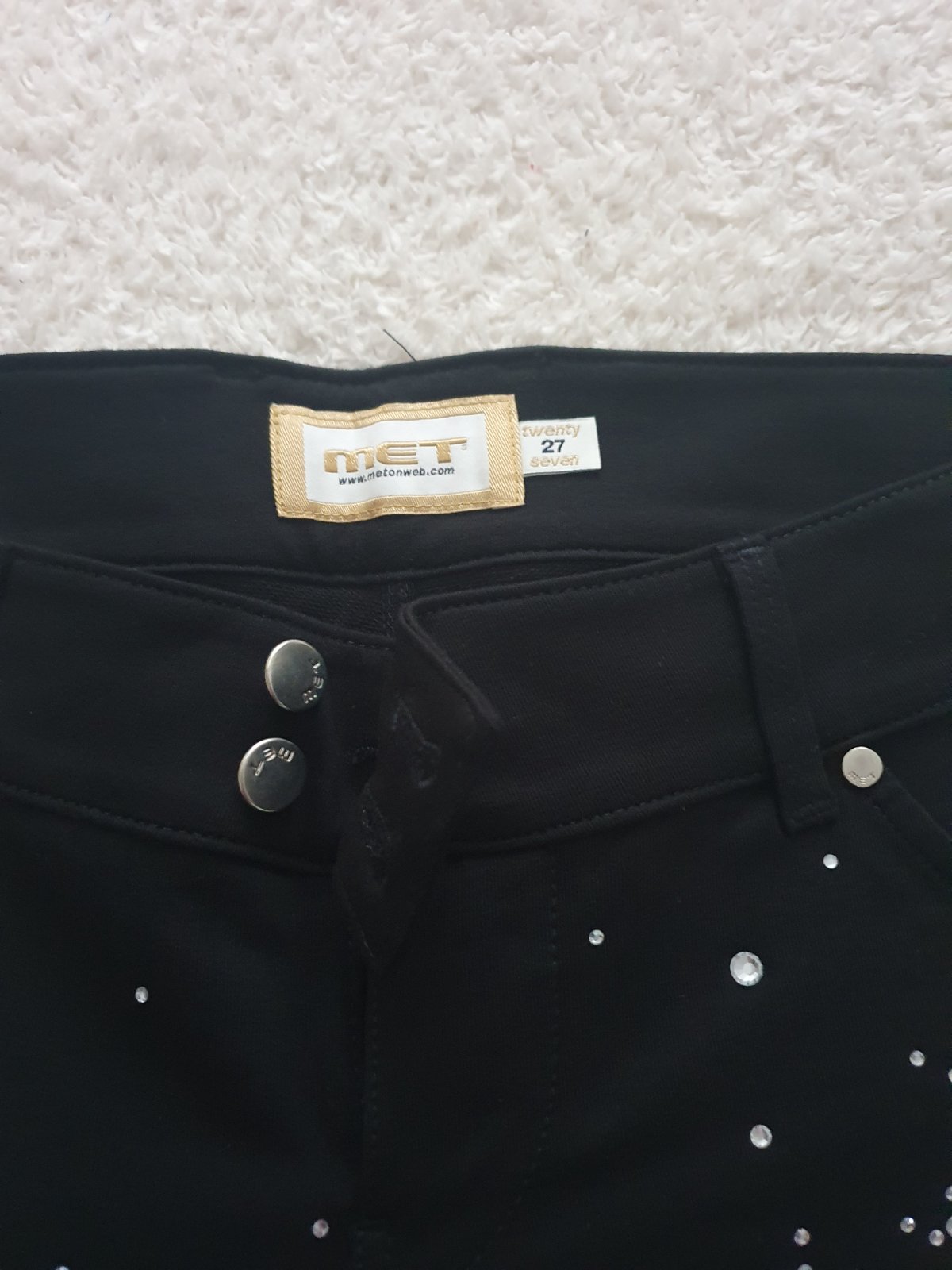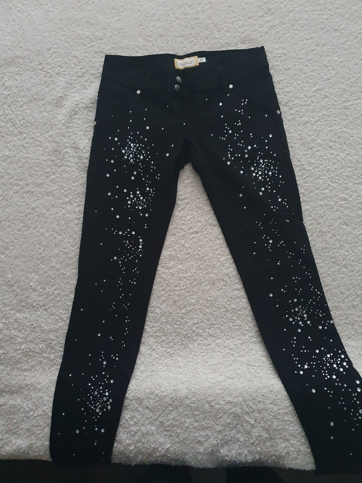 Čierne nohavice s perlami ,veľmi pekné.....oblečenè na jednu príležitosť. Veľkosť 27
