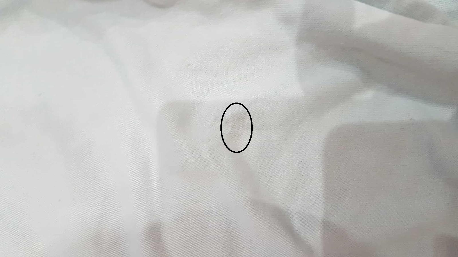 tepláky nemajú poškodenia, žiadne žmolky a podobne, výborný stav až na mini fliačik v zadu -veľkosť 1 cm. Označila som ho v krúžku, ostatné sú tiene :)