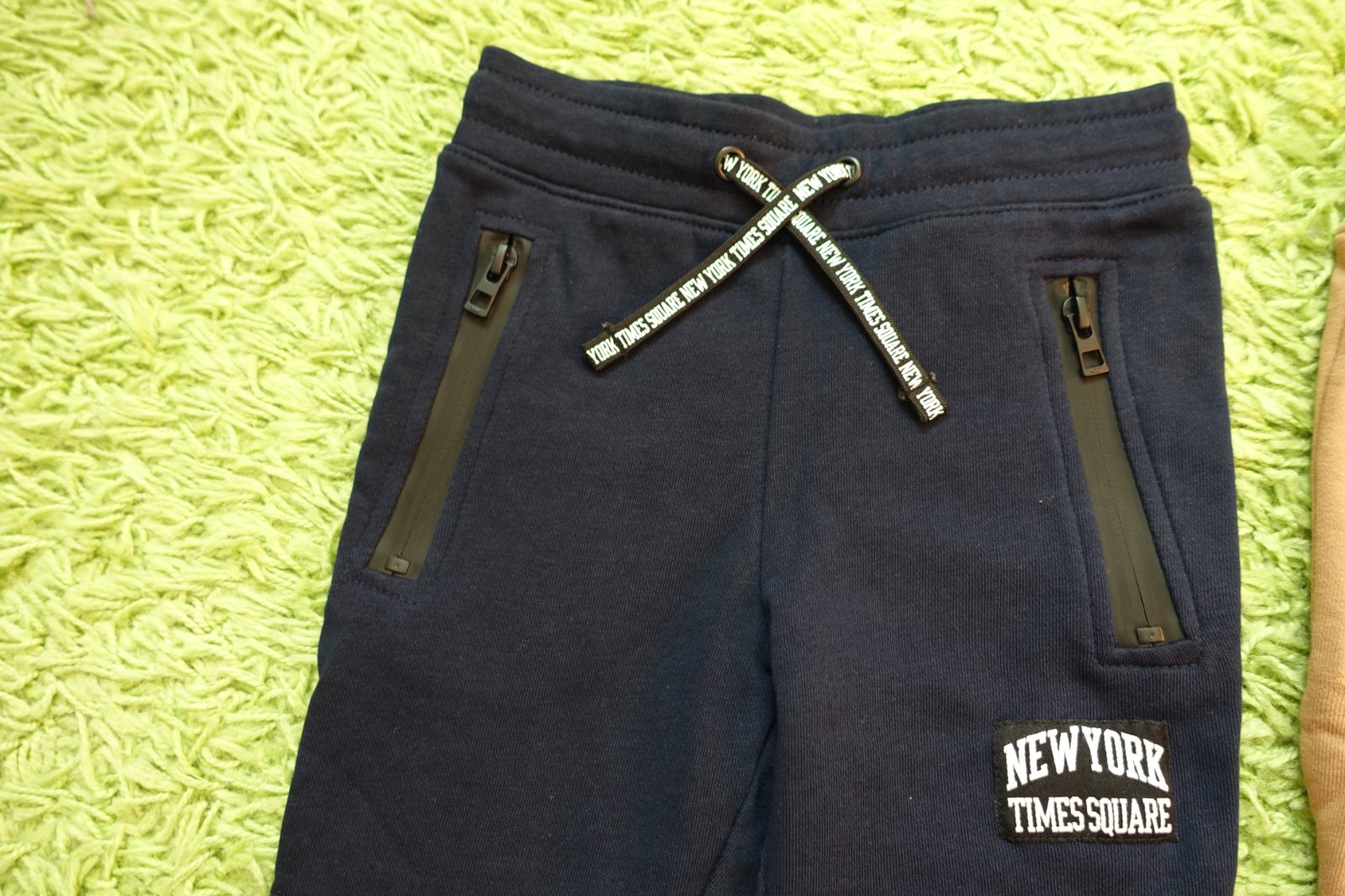 Predám bavlnené stredne hrubé nohavice vo farbe tmavo modrá a svetlo hnedá, veľmi príjemné na nosenie. Materiál - ako tepláčiky. Vpredu majú vrecká na zips. Šnúrka sa dá plne zatiahnuť. Nádherné. Mali sme ich 1x, ale sú top stav. Nie sú žmolkavé, ani deravé, ani fľakavé. Celková dĺžka tmavomodrých nohavíc je 55 cm, šírka pásu v kľude je 25 cm. Celková dĺžka svetlo hnedých nohavíc je 55 cm, šírka pásu v kľude je 24 cm. Cena je uvedená za 1 ks, predám aj samostatne. (V10)