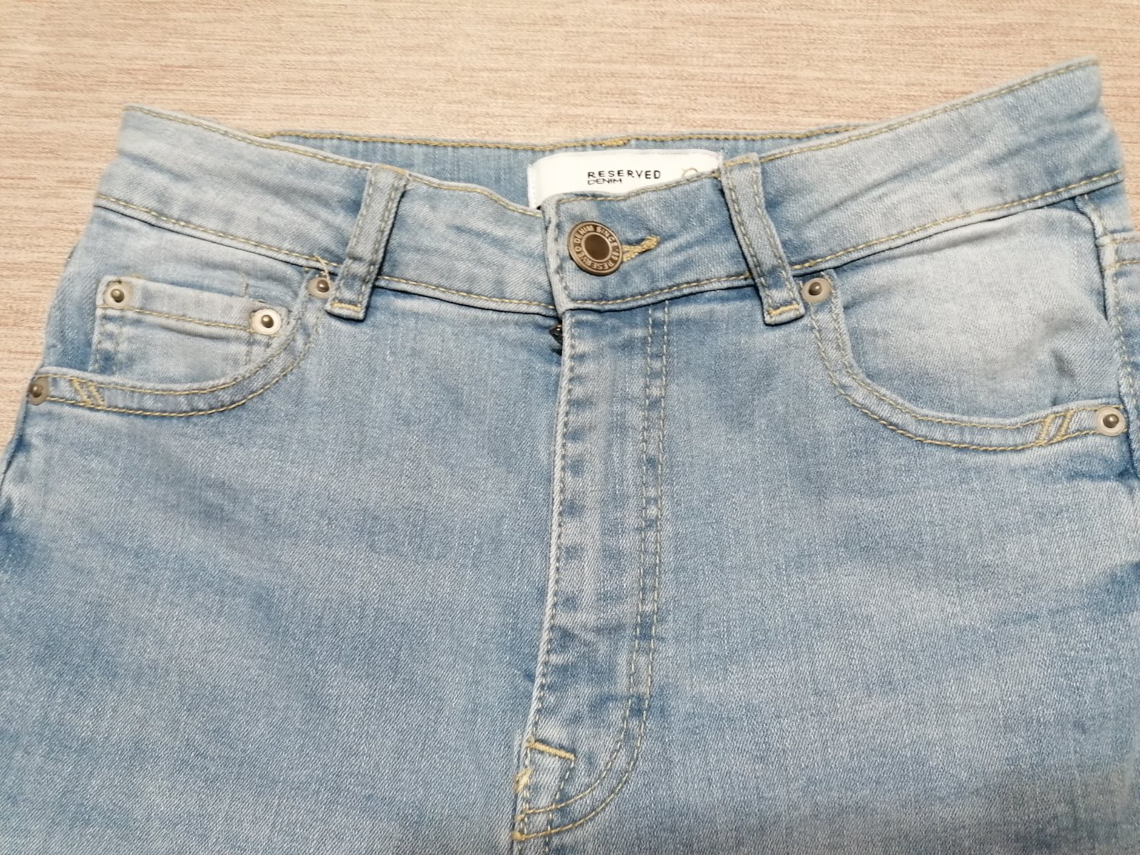 Značkové dámske rifle, veľkosť 36. Celková dĺžka je 99cm, od rozkroku 72 cm. Pás 2x33cm, povolí do 2x38cm.