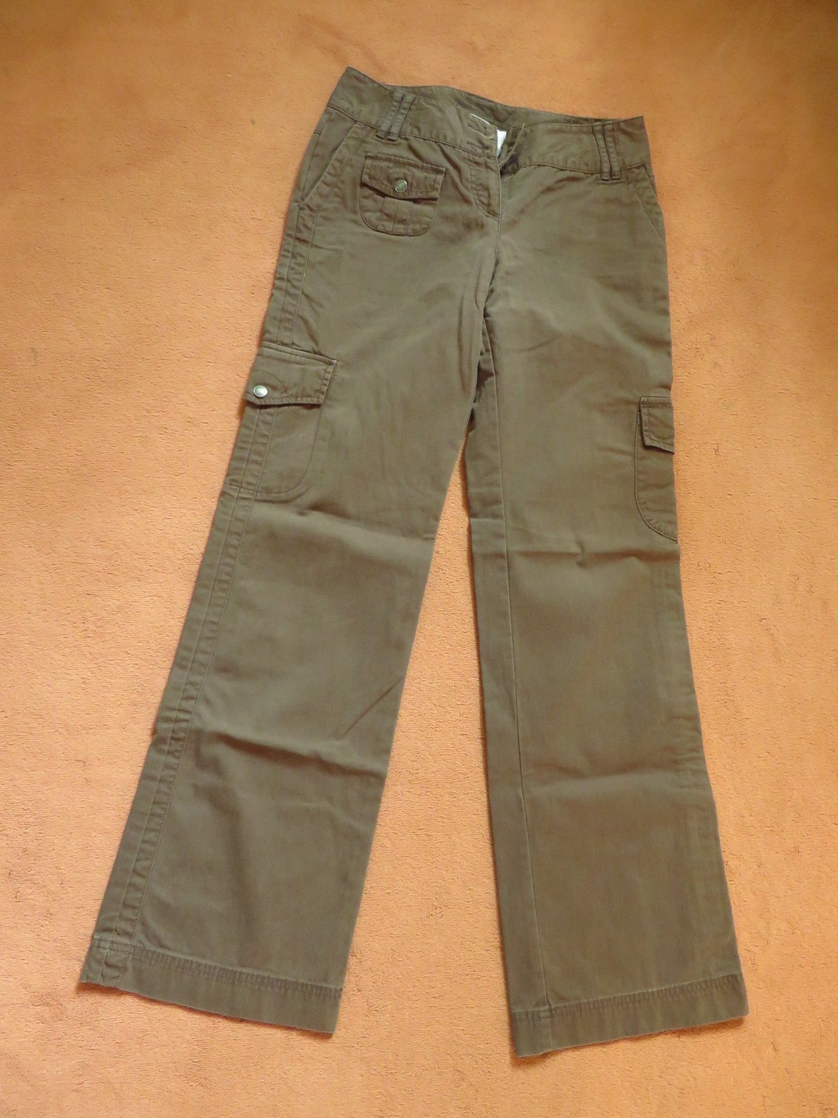 Predám tieto dievčenské nohavice, veľ. 32, farba je taká zelená - vojenská. Nemajú žiadne poškodenia, majú rovný strih.