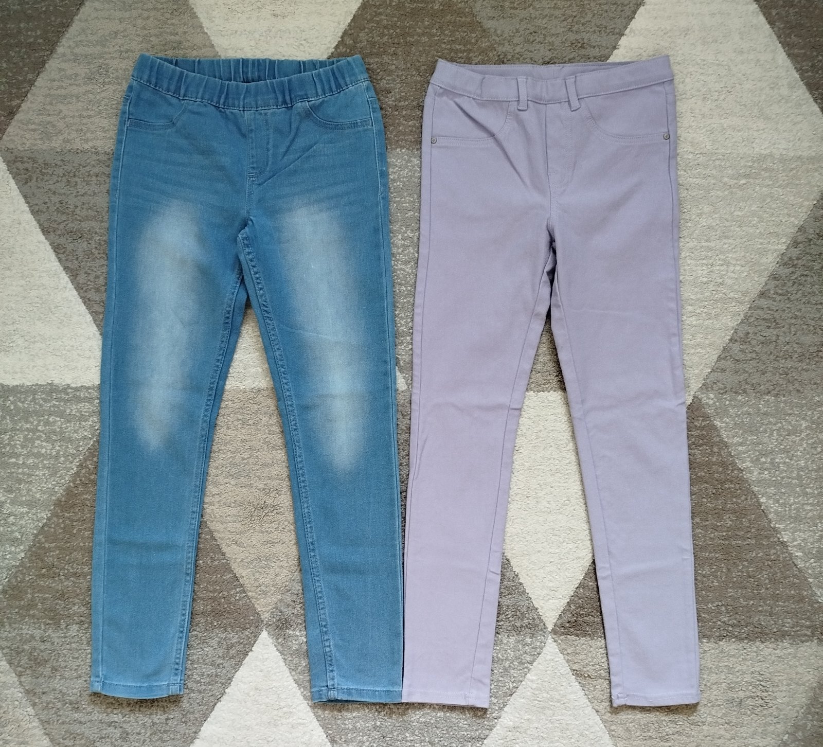 Džegíny alebo jeggins veľkosť 146/152 v top stave. Fialové Tchibo boli použité raz, dĺžka 84cm, pás v kľude 32cm a natiahne sa do 36cm. Modré KIK dĺžka 84cm, pás v kľude 32cm a natiahne sa do 38cm. Cena spolu + pošta.