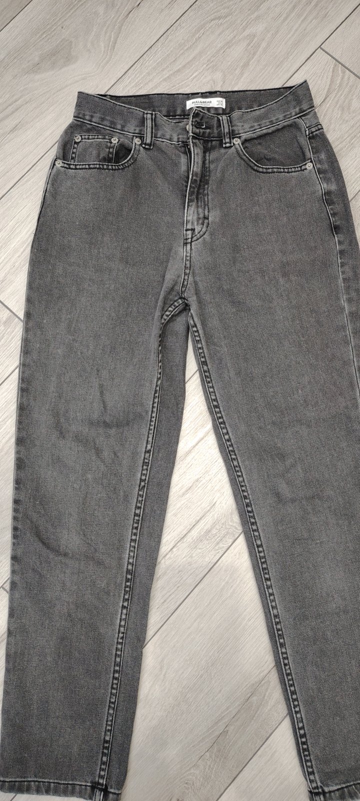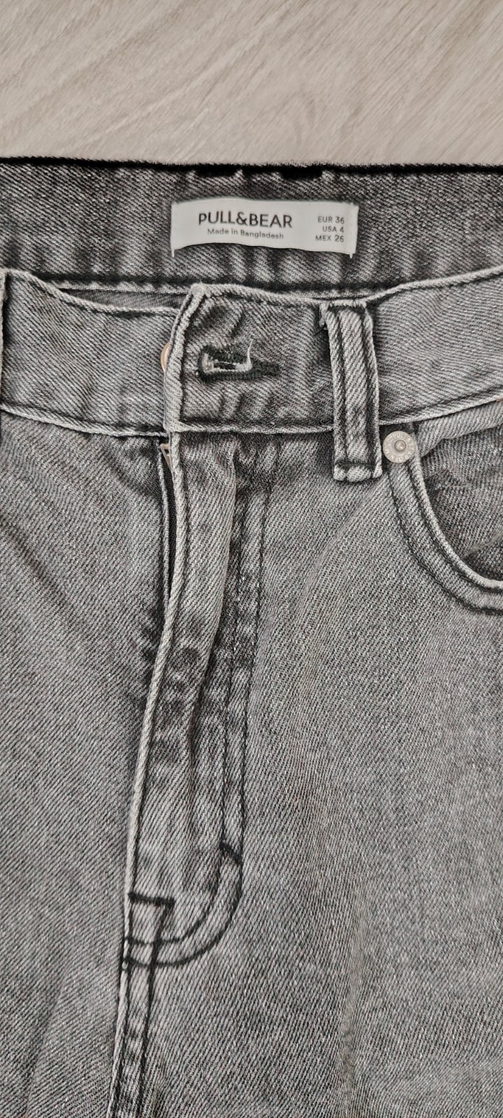 Tmavošedé rifle zn.Pull&Bear s push-up, majú jemné známky nosenia. Veľkosť 36. Pás - 33 cm Dĺžka - 91 cm