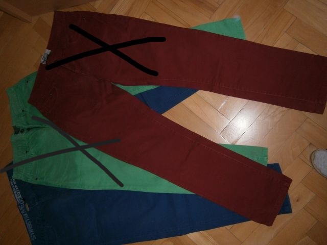 Predám pánske modré rifle, menej nosené, zodpovedajú veľkosti 48-50. Pás 45 cm x 2. /Bordové a zelené rifle predané/. Cena 3,- eur + pošta. Na dobierku nezasielam, osobný odber možný.