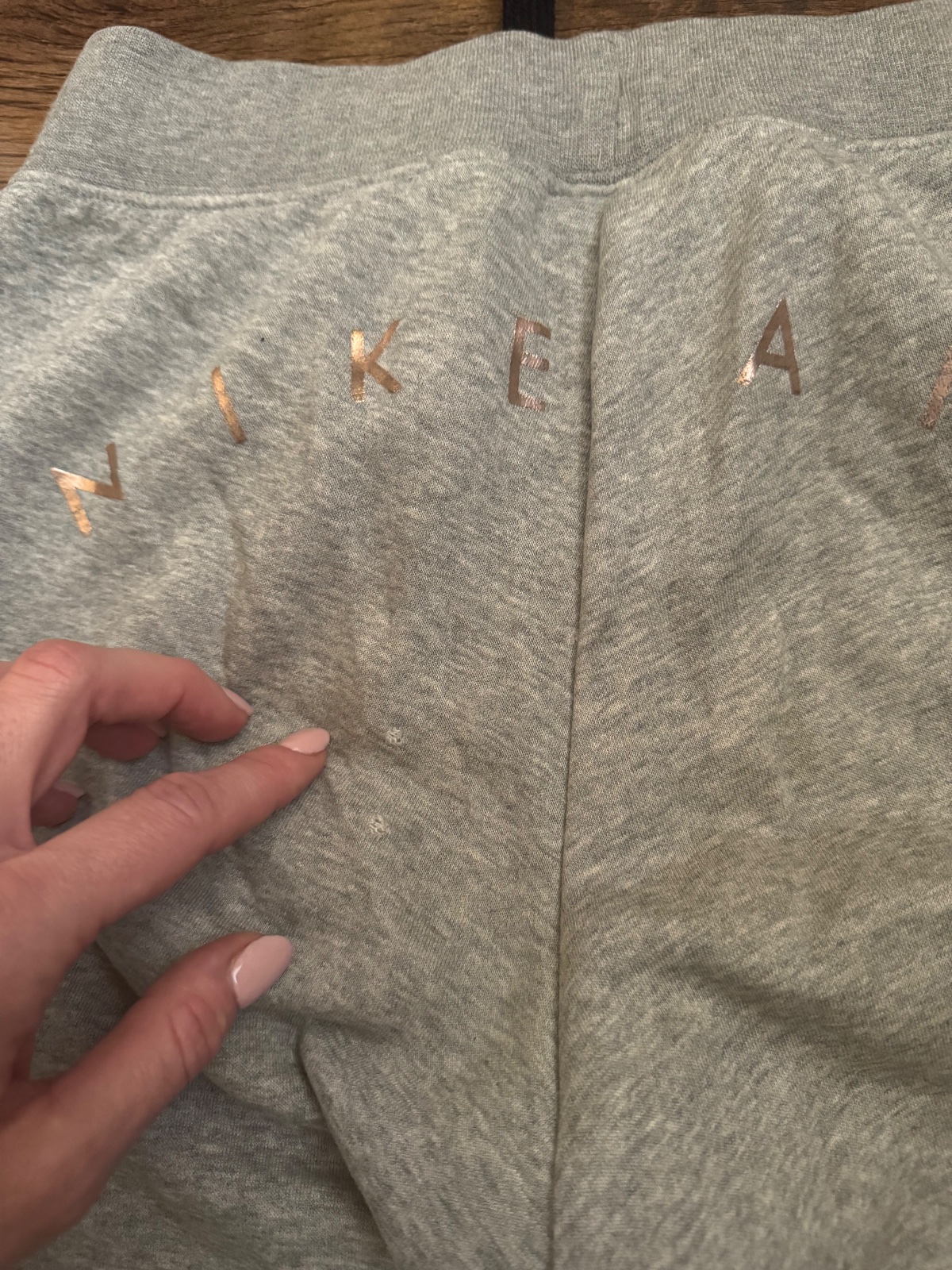 Ponúkam štýlové pohodlné hrubšie tepláky Nike. Bronzové metalické logo Nike vpredu aj vzadu na ritke. Značka originál Nike. Veľkosť uvedená S, ale sú podľa mňa menšie, preto uvádzam menej, ale pre istotu prikladám aj rozmery. Boli nosené, vzadu na ritke 2 mini dierky ale nie je cez ne vidno, odfotila som aj ked tam mám ruku;). Inak naďalej v peknom stave. Poštovné podľa taríf.