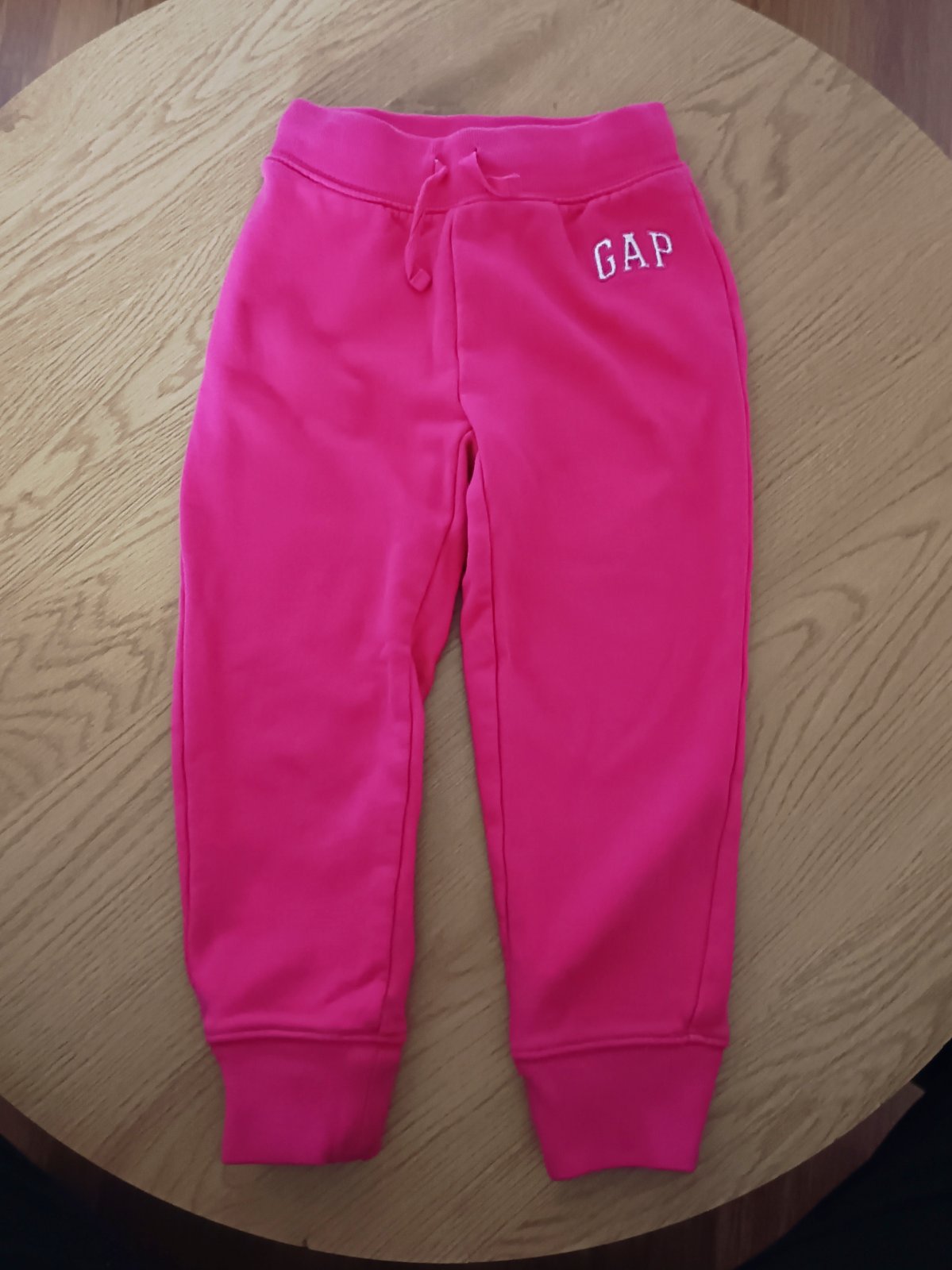Predam teplaky GAP, velkost 5 rokov. Bez poskodeni ci flakov, sem tam zmolky. Dlzka od rozkroku 45 cm, pas 26,5 cm.