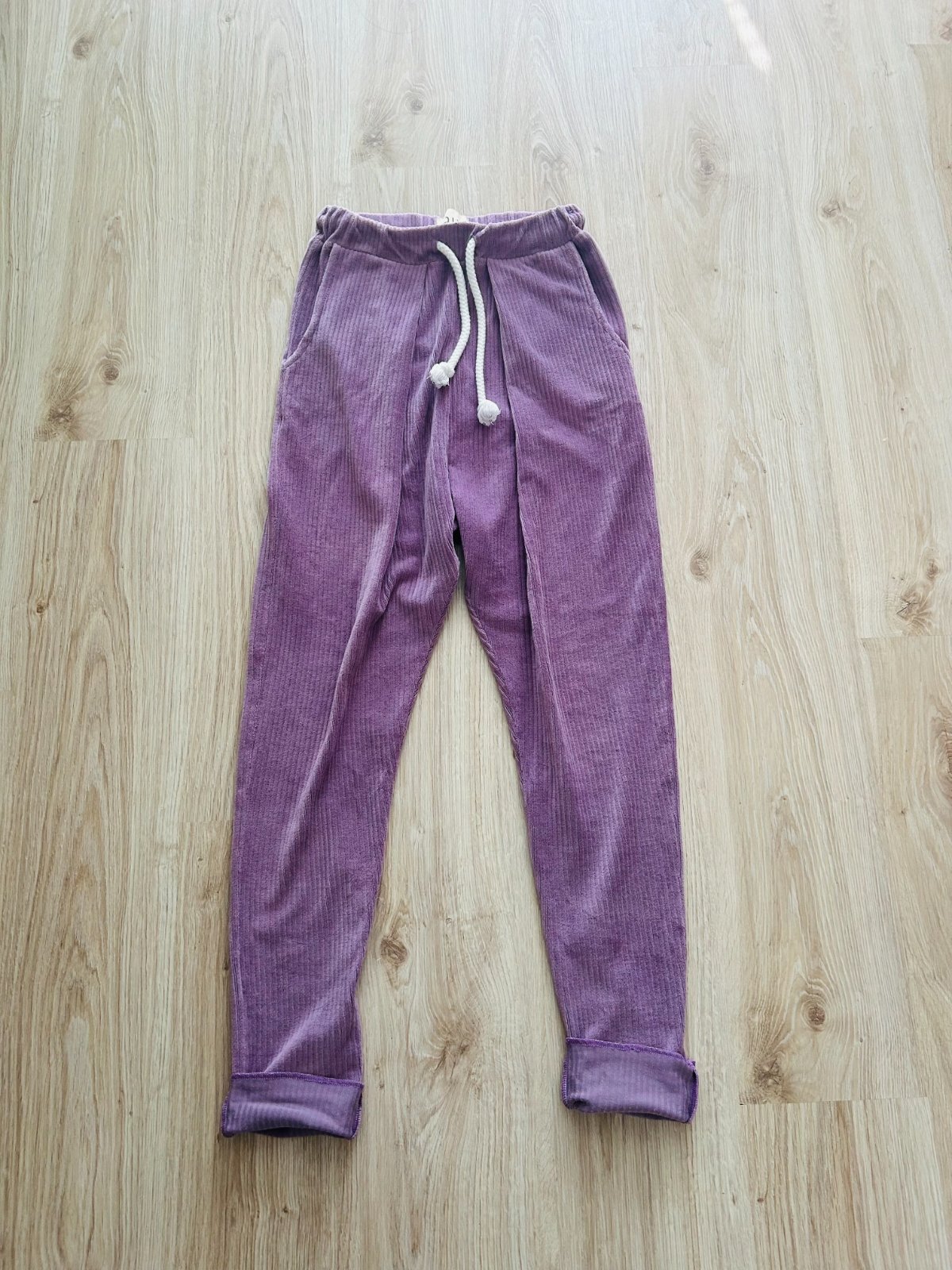 Predám tieto štýlové a nádherné menčestrové nohavice slovenskej značky RAIA vo veľkosti S. Boli oblečené asi len 2x. Majú krásnu fialovú farbu a biele hrubé šnúrky. V páse majú gumu, takže sa prispôsobia. Veľmi krásny ikonický a pohodlný kúsok.