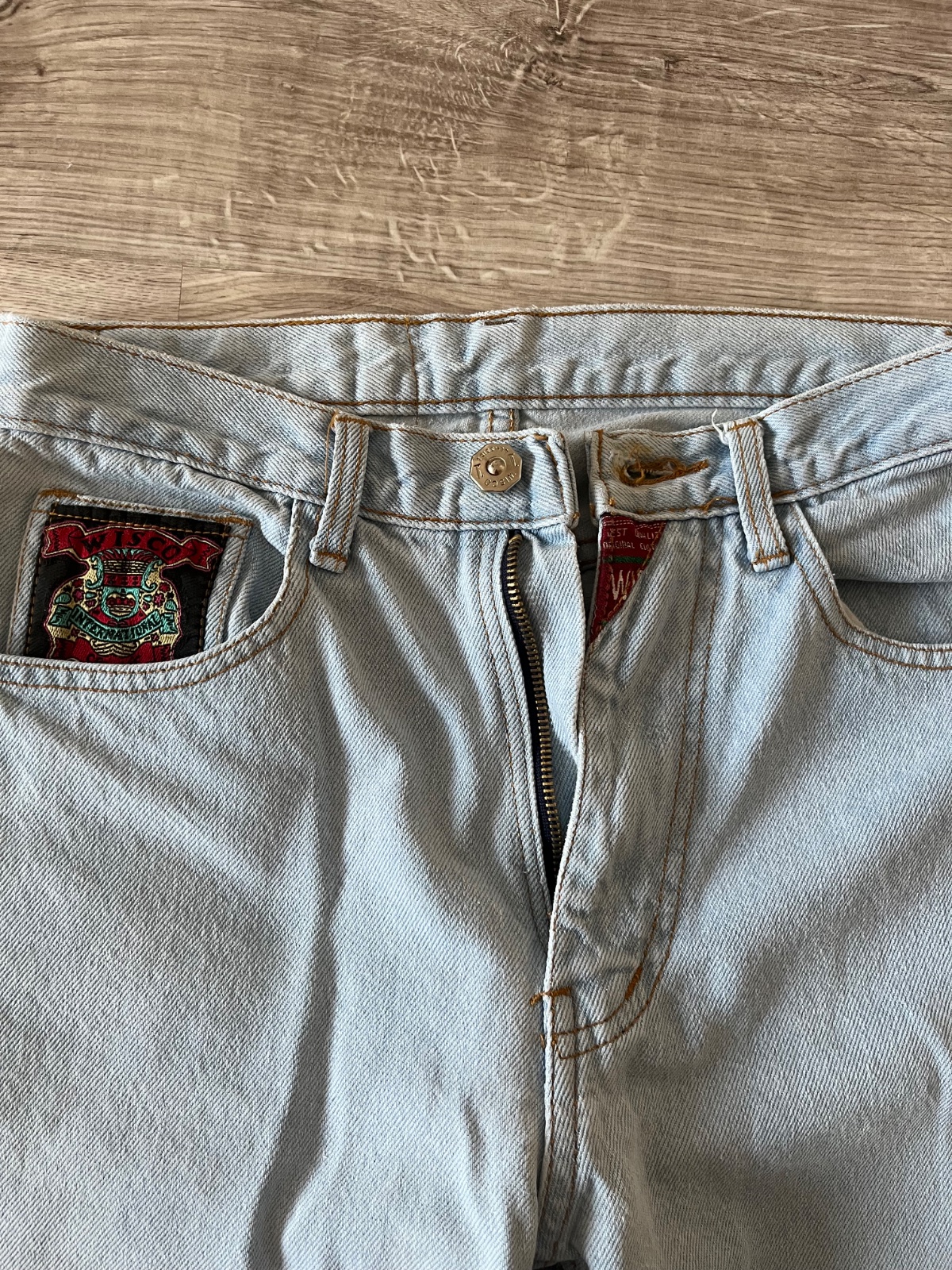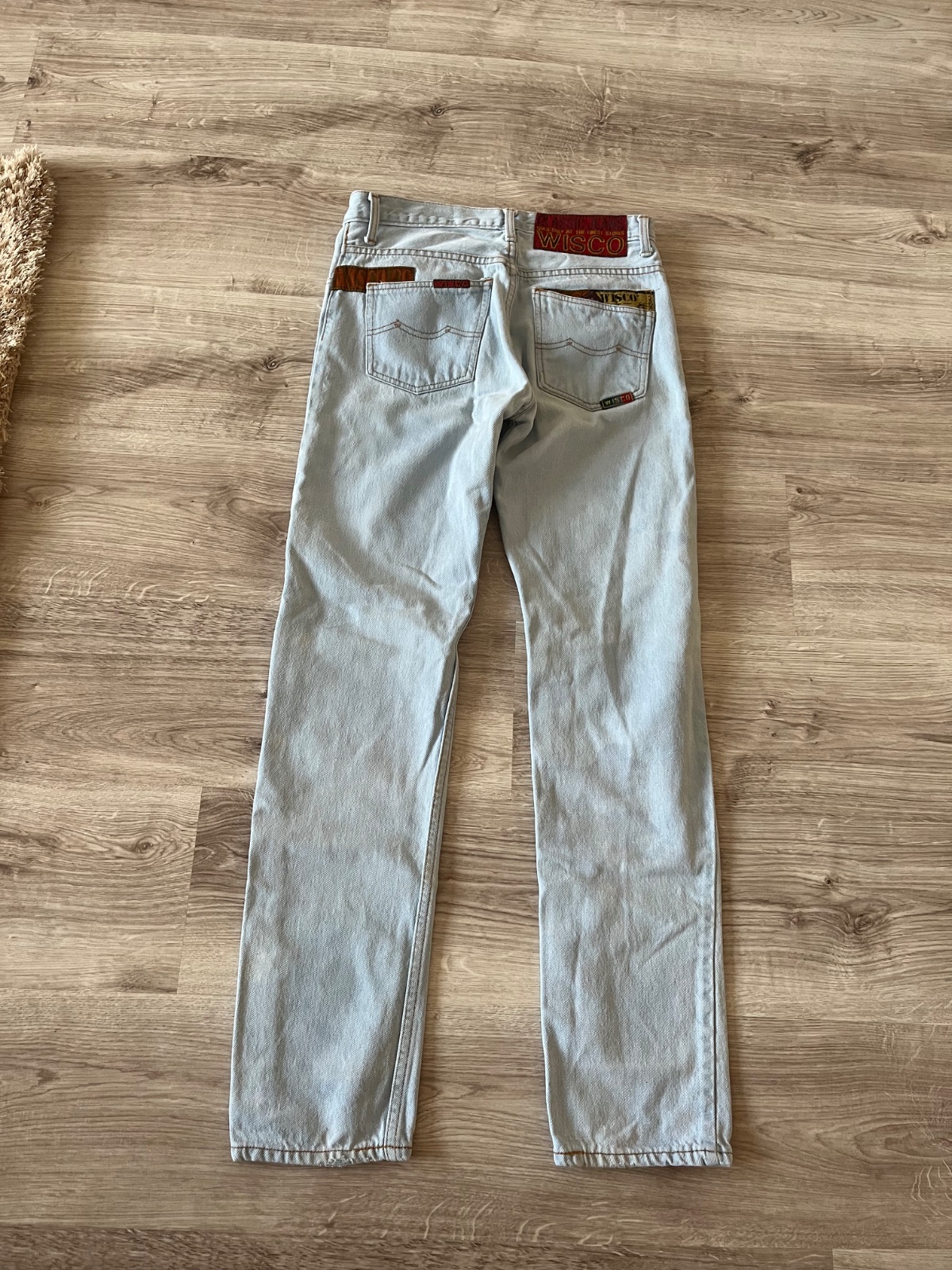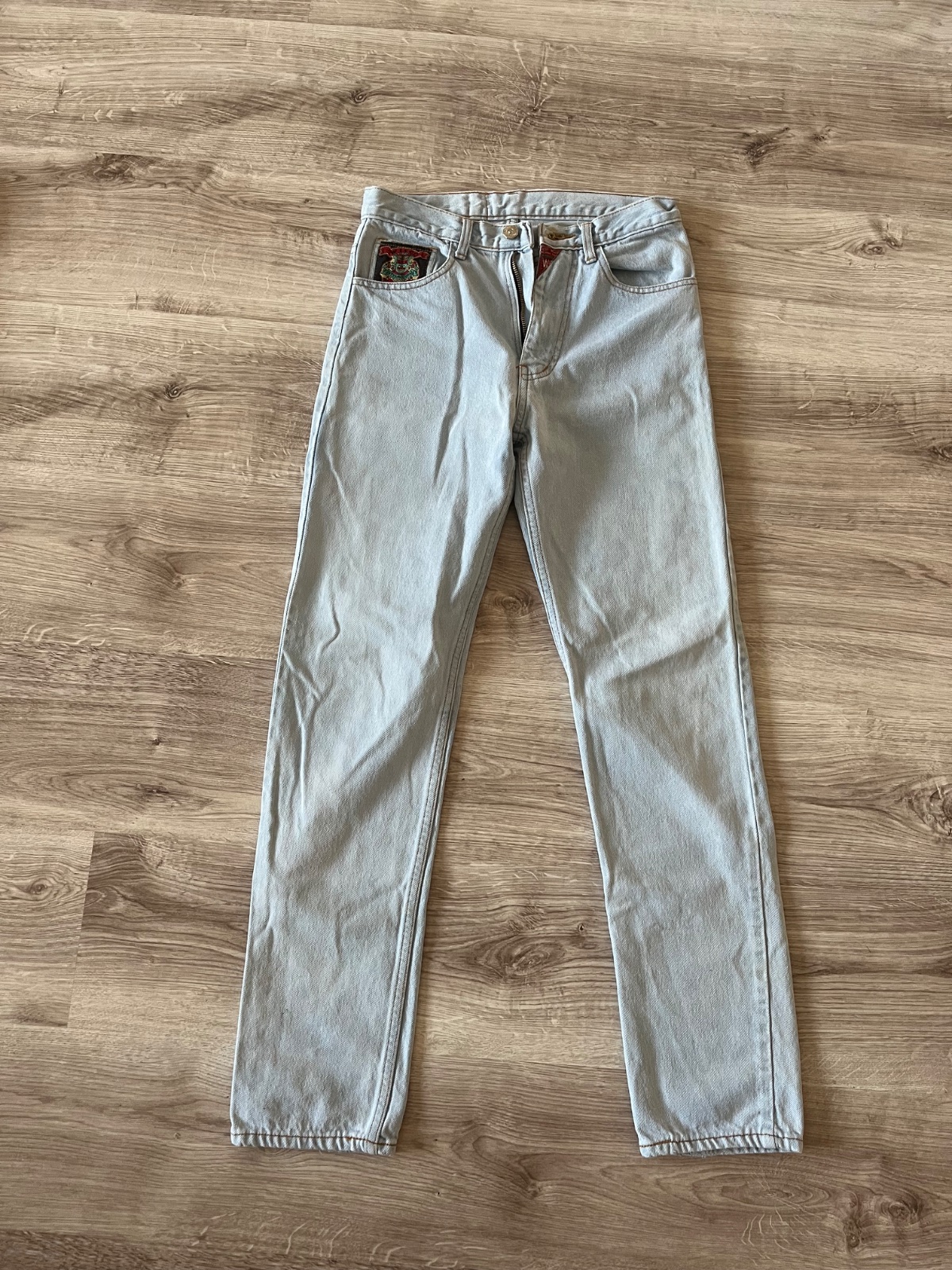 Pred rifle veľkosť píše M ale sedia na veľkosť S značka burning denim, majú drobné chybičky krásy chyba pár kúskov trblietok vid foto ale to nevadí na nosení.,, rifle sú pohodlné dole sedia úplne...