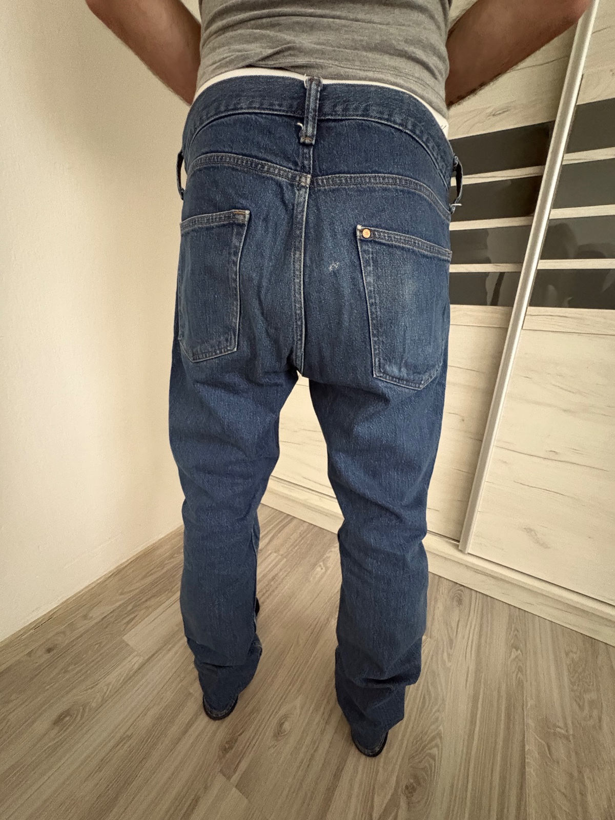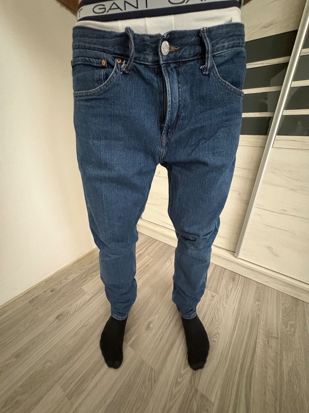 Kupované nové, cena cez 30e. Mäkkunka riflovina, veľmi pohodlne. Slim strih, veľkosť w34 l32.Vyzorovo v peknom stave, no na vonkajšej strane na stehnách asi 5cm látky roztrhanej.verim,ze šikovná ma...