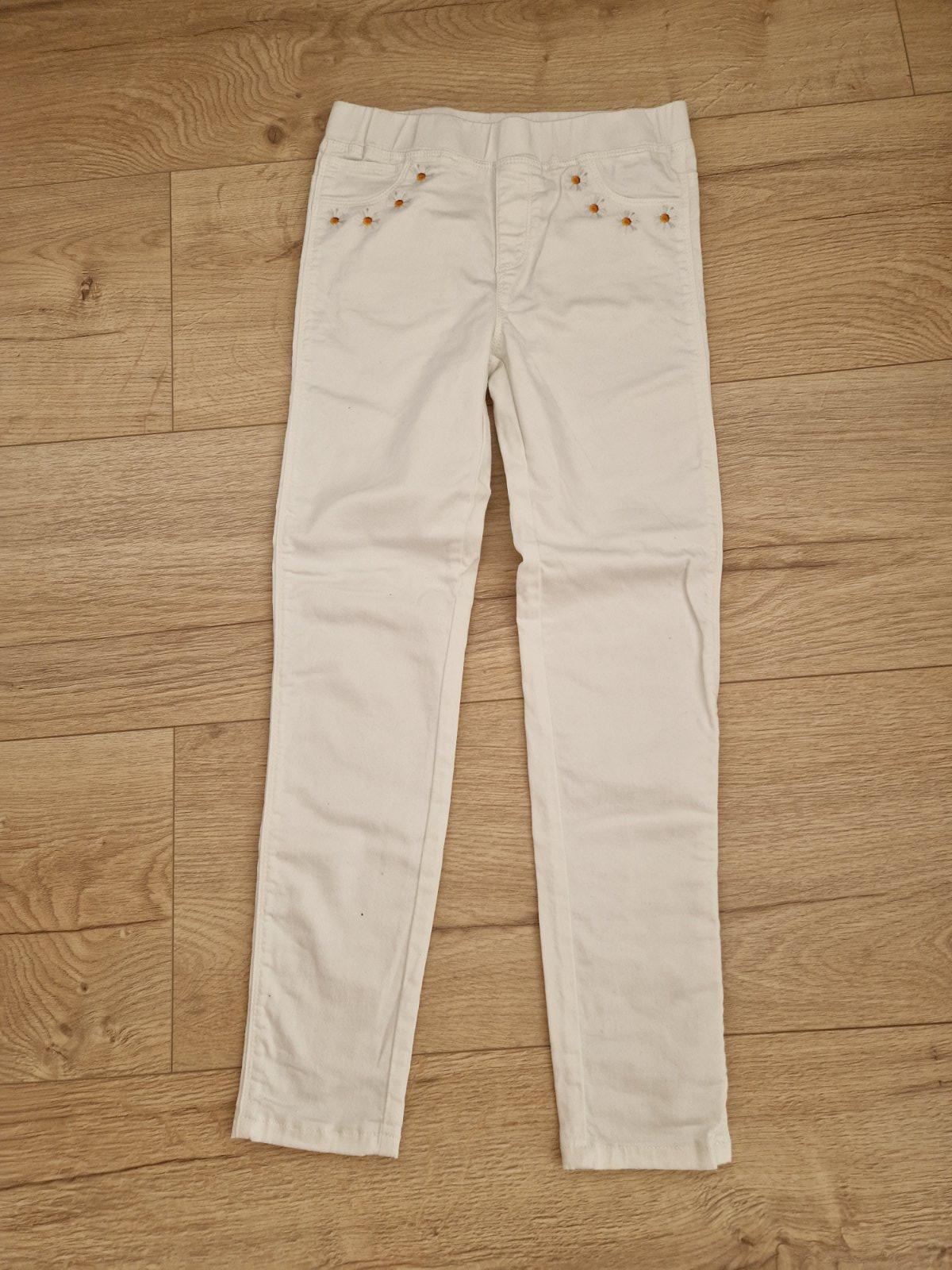 Krásne ako nové nohavice, biele rifle 146/152, vo vynikajúcom.stave. Dlzky cca 85/58cm, pás guma 62cm. 2x prané.