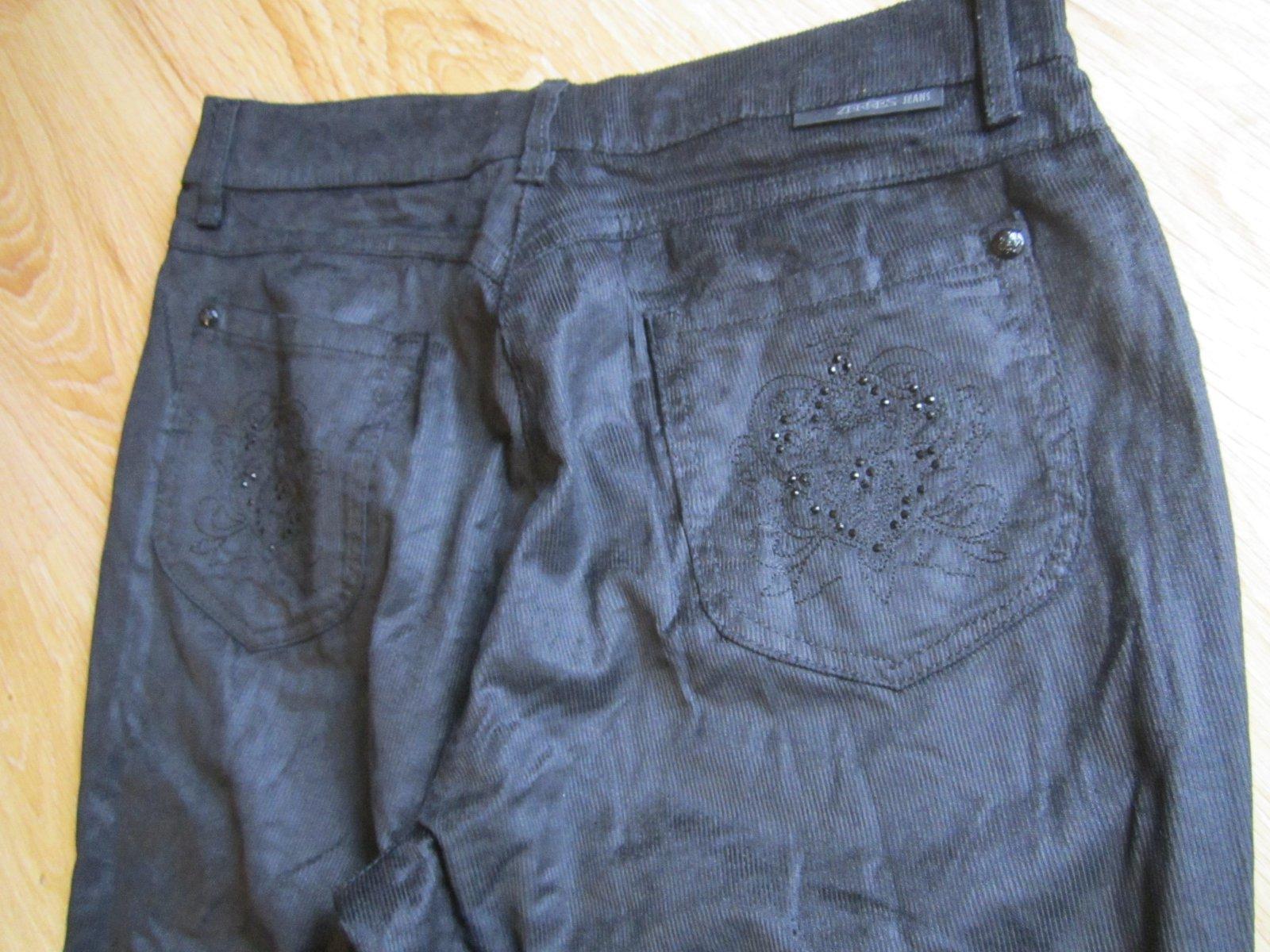 Krásne čierne tenšie menčestrové nohavice iba vyskúšané -jemne lesklý materiál ,dĺžka-103cm ,pás 2s 40 cm ,boky 2x 57cm ,predný sed-25cm a zadný-40cm----------+ pošta