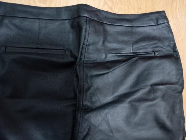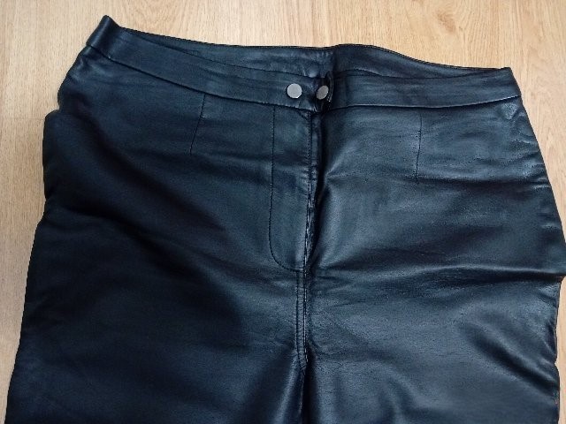 Čierne nohavice, vpredu kožené, vzadu bavlna. Sú príjemné na nosenie a elastické. Sú v používanom, veľmi dobrom stave. Rozmery: pás 43-46cm, dĺžka 104, vnútorná dĺžka 75cm, stehno pri rozkroku 29cm...