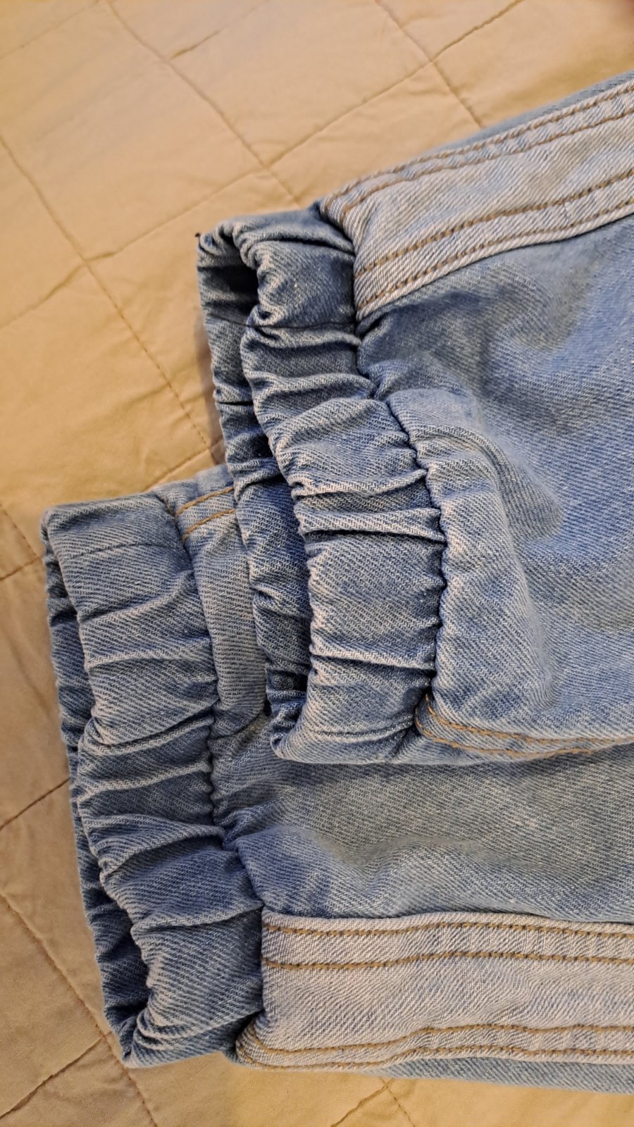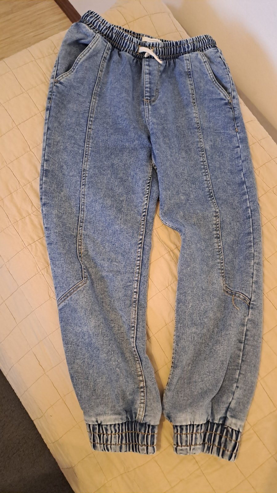 Vacsie-č.164, pas na gumu,spodok tiez ukonceny gumou. Bledomodre. Len odstrihnuta visačka, nenosene, nove.