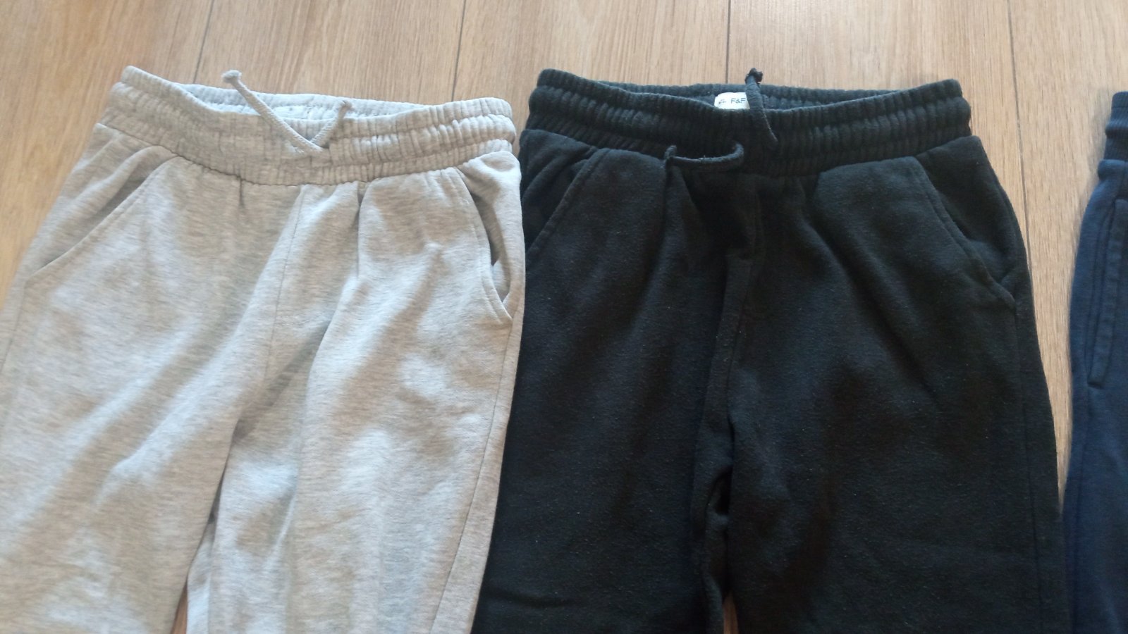Tepláky v dobrom nosením stave. Bez poškodenia. Čierne majú trochu zmolky - značka Terranova. A ešte jedny tmavomodré značka pepco.
