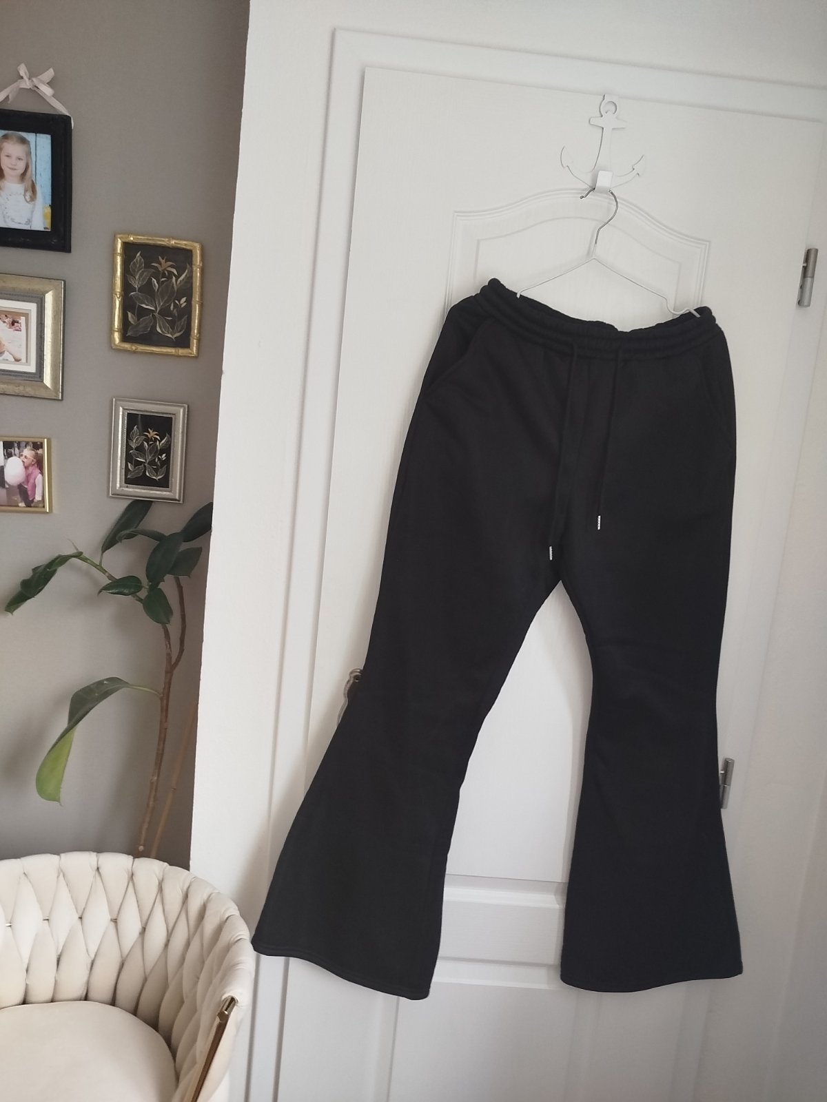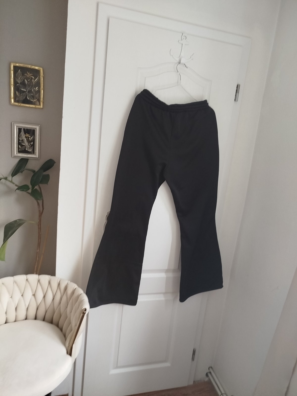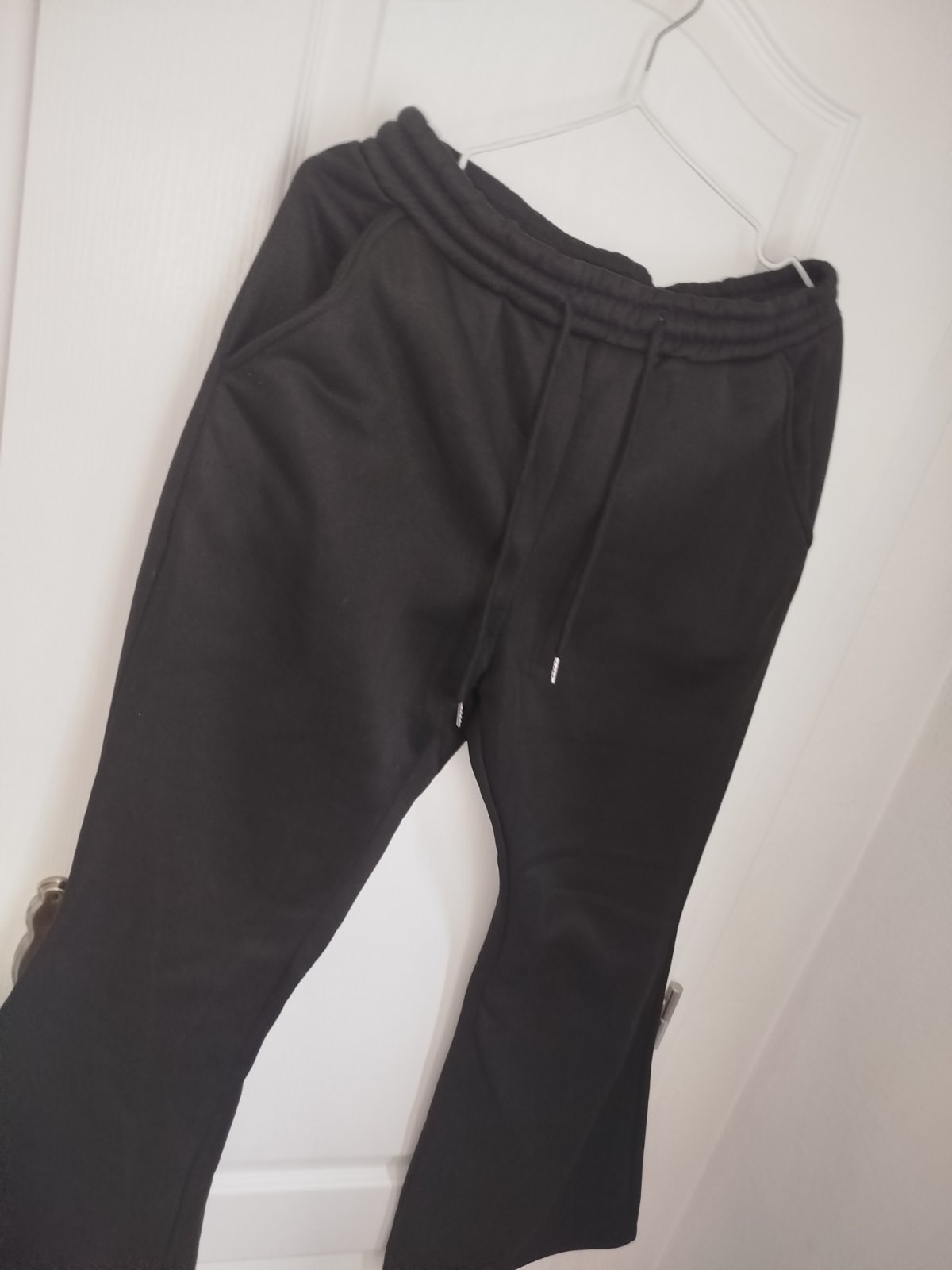 1x oblečené tepláky dole rozšírené dĺžka 103cm pás na gumu v kľude 36x2cm povolí Max 47x2cm.