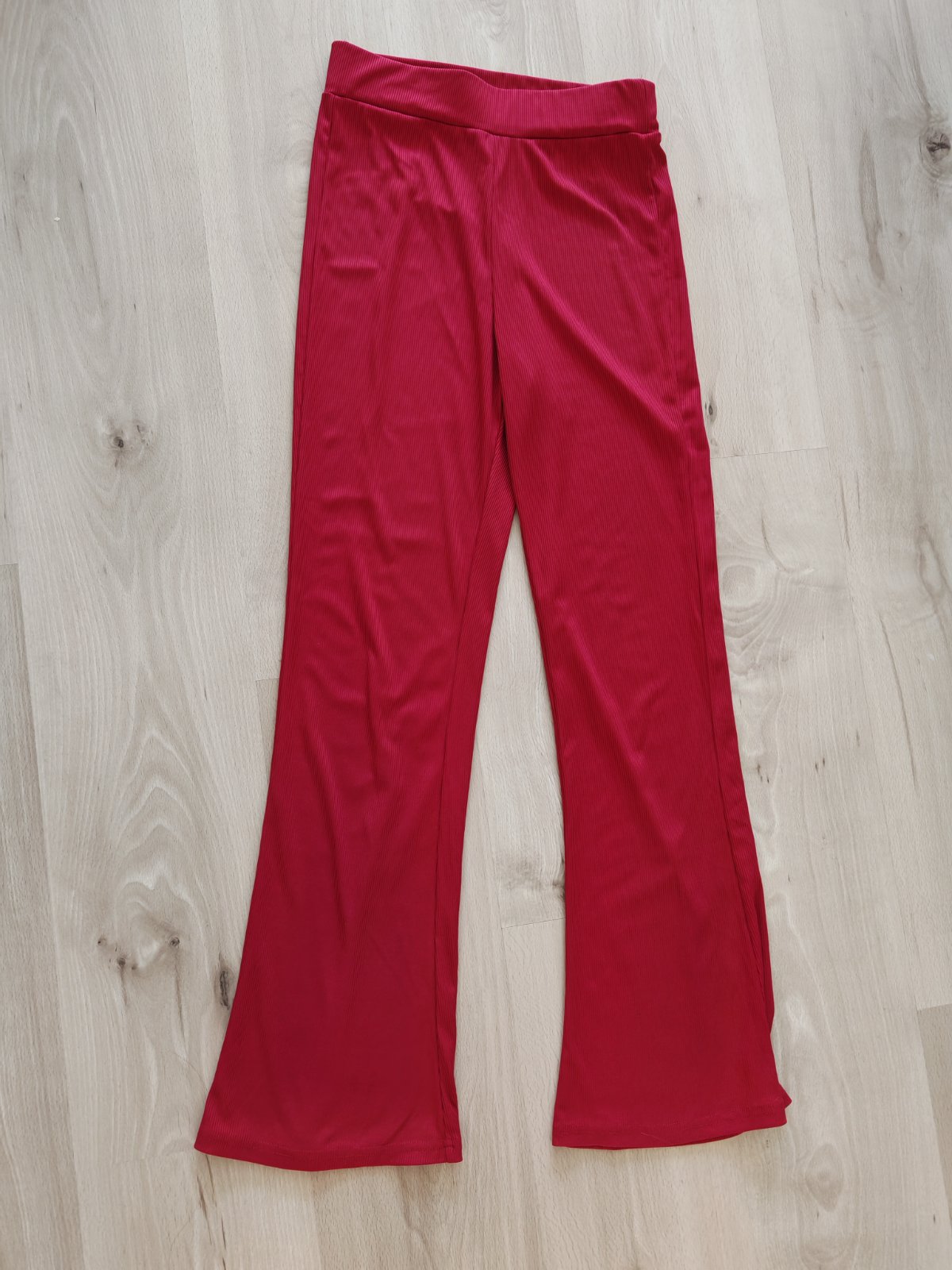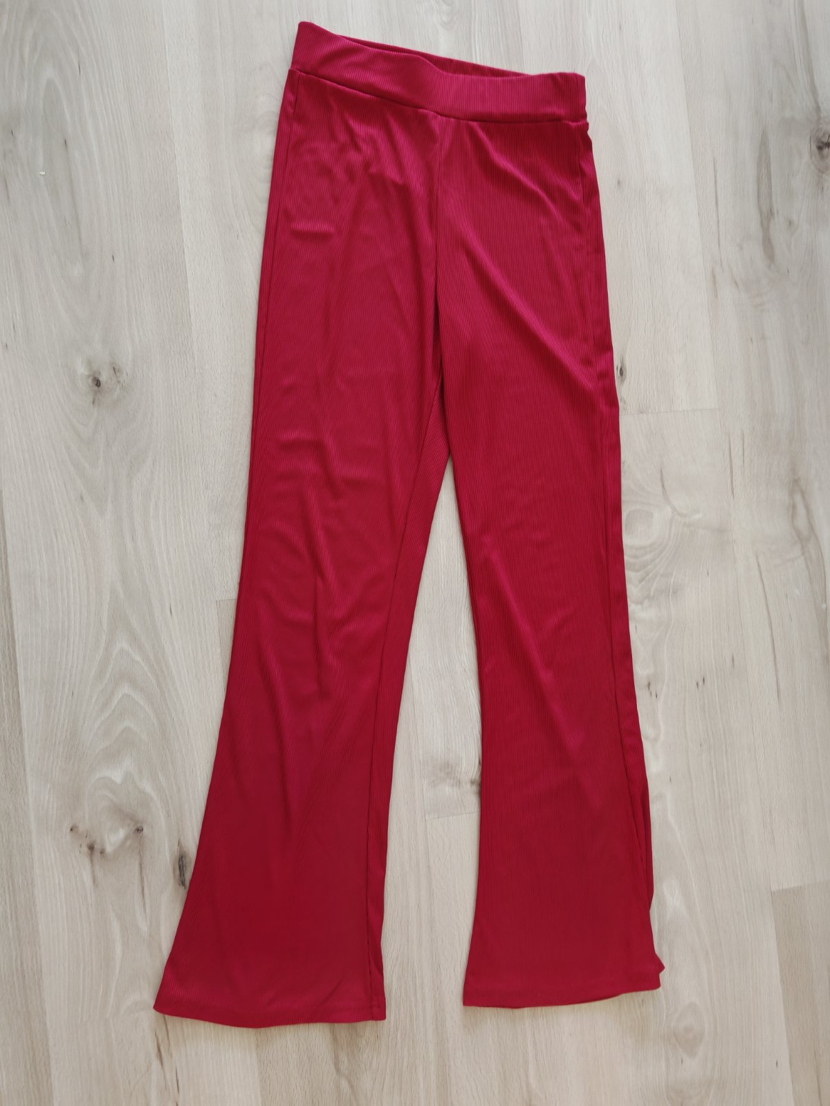 Nádherné červené široké nohavice z ľahkého materiálu Veľkosť M Vyšší pas Zips na boku 2 krát oblecene v perfektnom stave Dlzka 94cm Pas 37cm x 2 Boky 54cm x 2