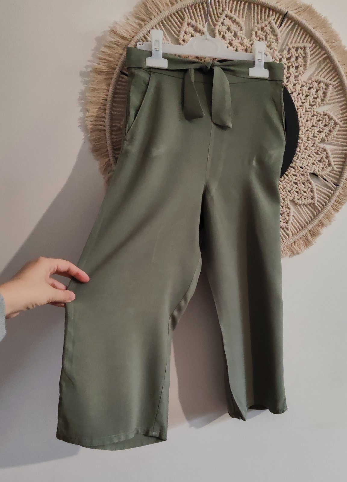 Malá si ich obliekla, vyskúšala, odtrhla visačku a povedala, že sú malé. 100% bavlna. Tenšie. Dole stiahnuté gumou. Ani neopraté. Dĺžka 80 cm, pás 34 cm, vnut.dl. 54 cm.