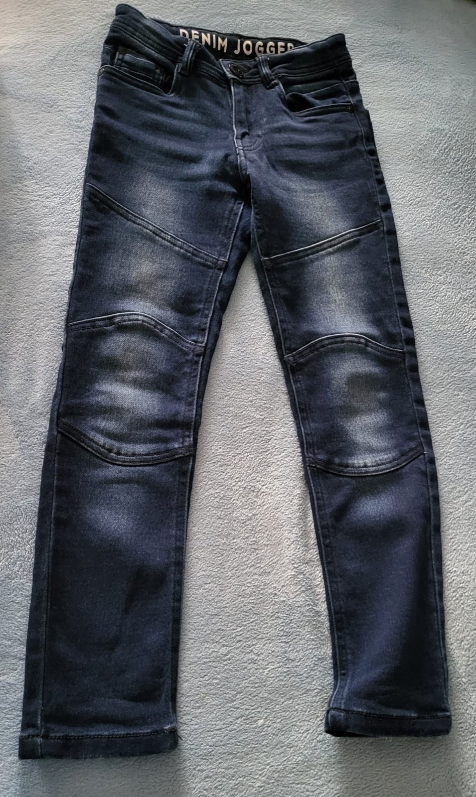 Pekný zachovalý stav, kolená spevnené zaplatami u krajčírky.