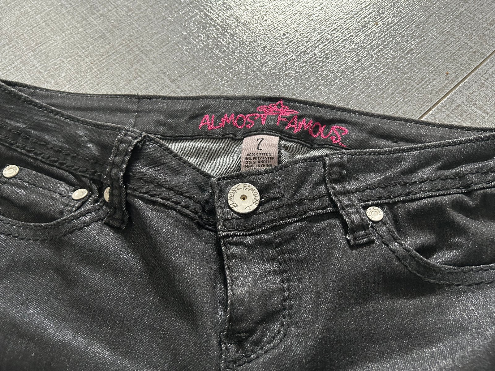 nové, nenosené čierne rifle, kupované v USA- úzke, elastické s leskom. Krásne vypracované. Materiál- 80% bavlna, 18% polyester, 2% spandex