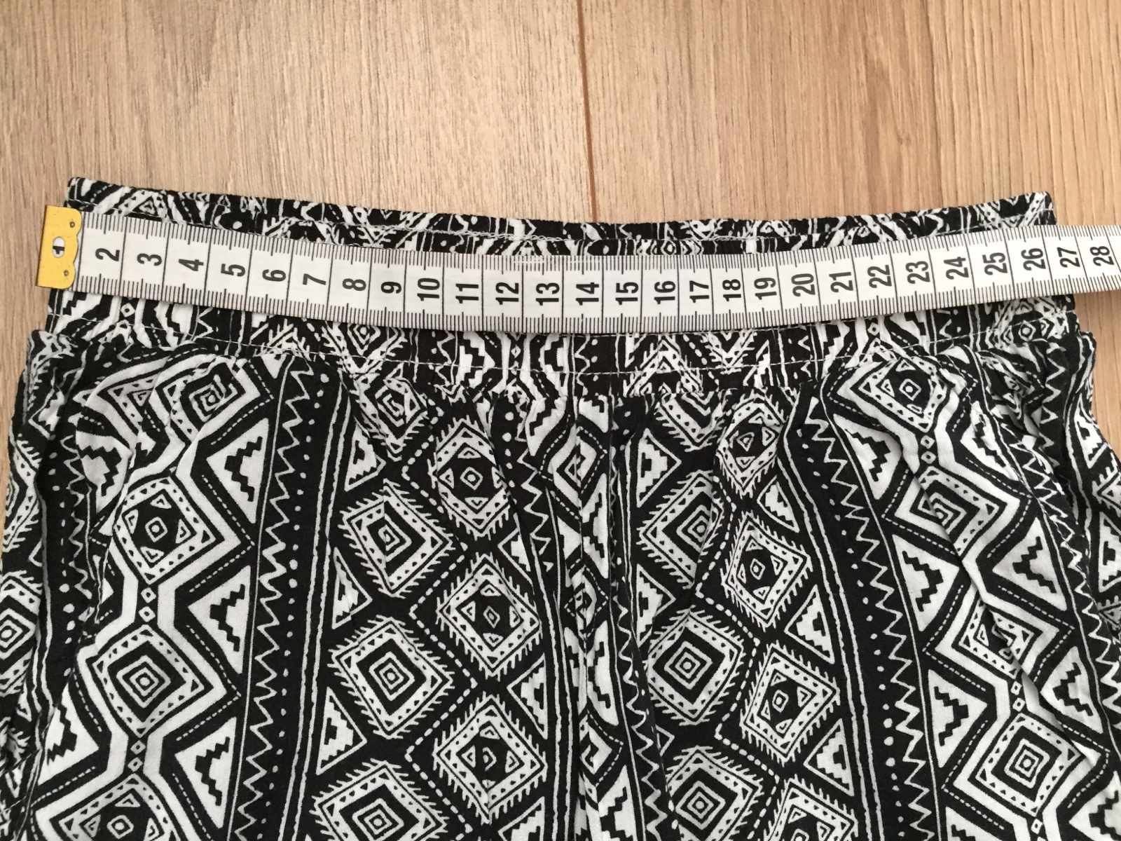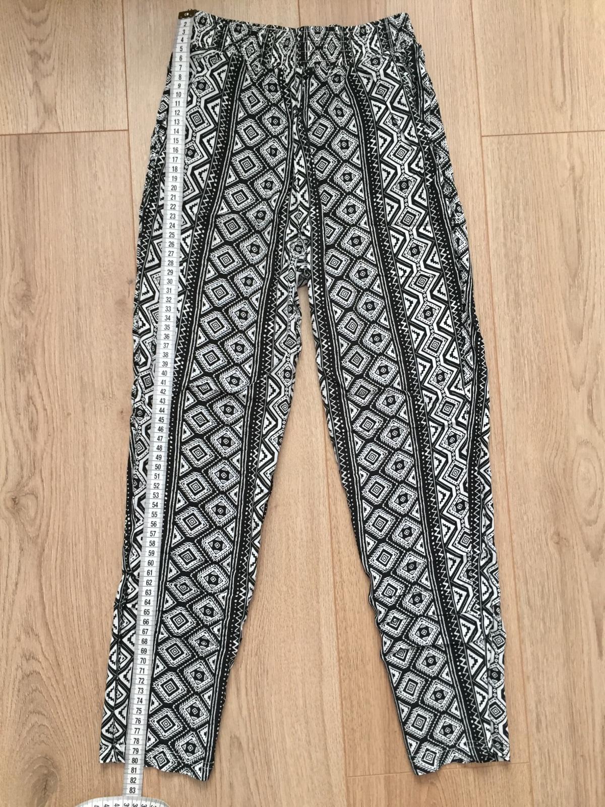 v peknom stave vonkajšia dĺžka - 84 cm vnútorná dĺžka od rozkroku - 63 cm pás v kľude - 29x2 cm (regulovateľný pás)