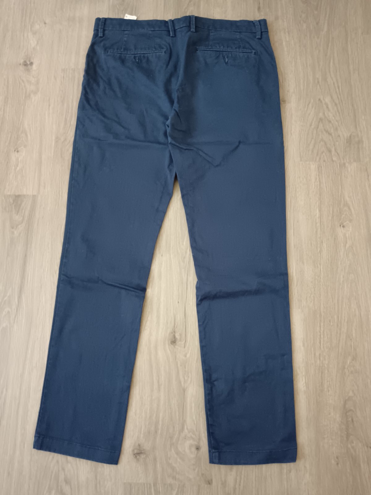 v peknom stave bez poškodení, veľkosť uvedená 32, jemne elastické, dĺžka 103cm, vnútorná dĺžka 80cm, pás 41cm, predný sed 29,5cm, zadný sed 33cm, šírka nohavice pod rozkrokom 29,5cm.
