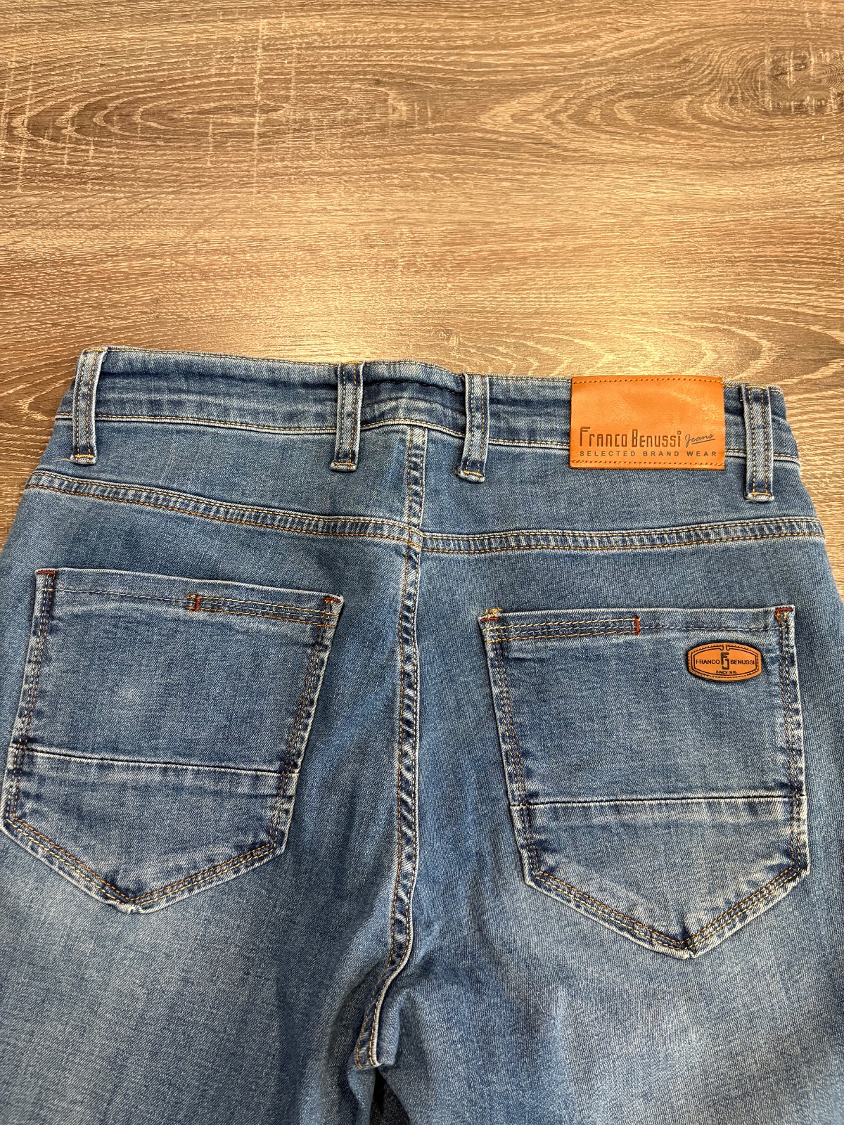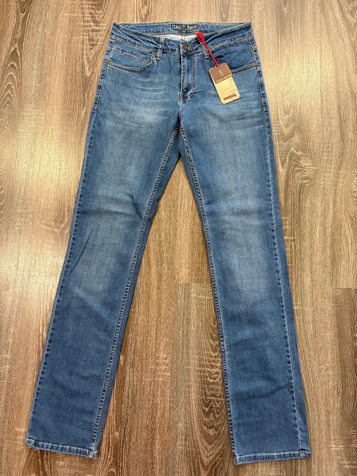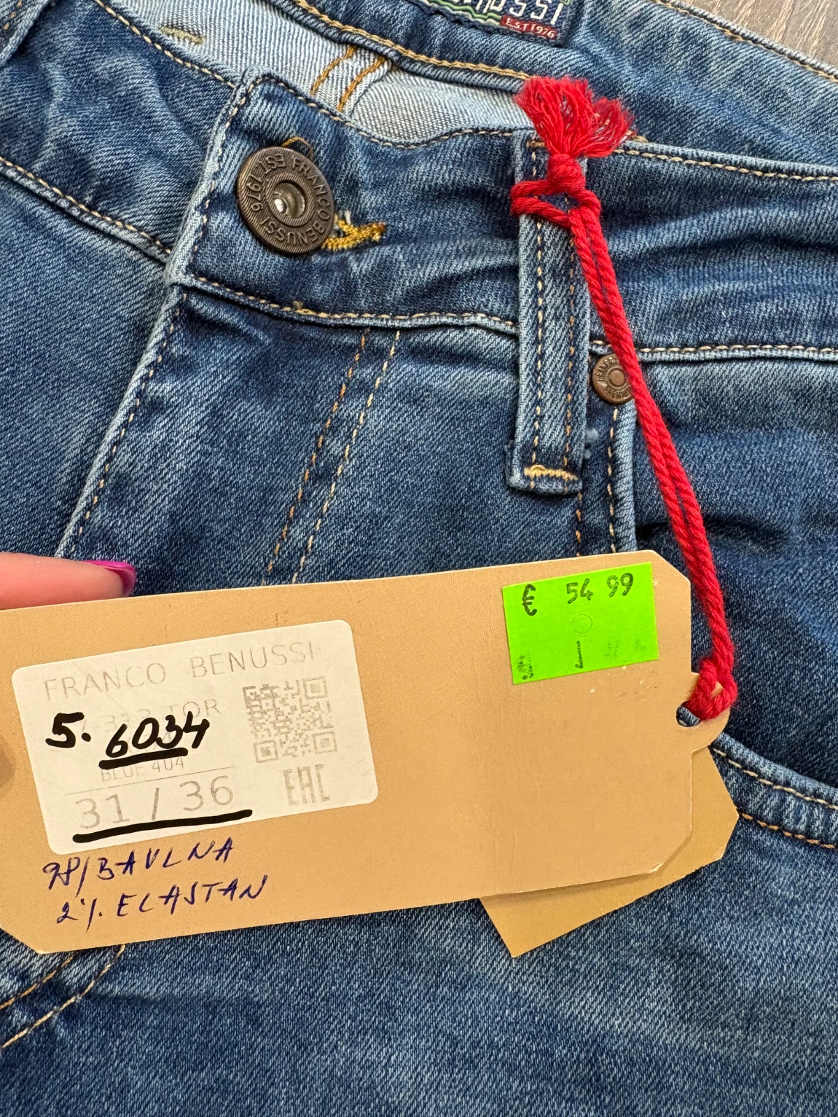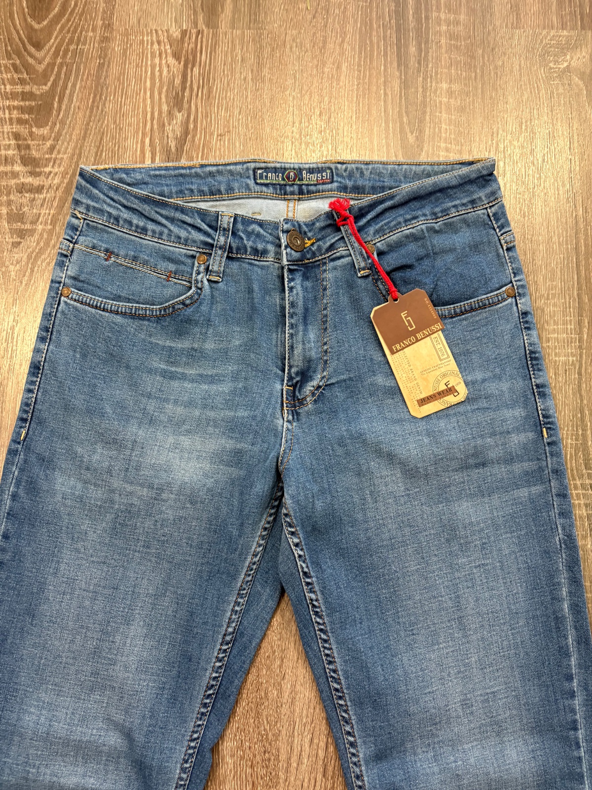 FRanco Benussi nove panske riflove nohavice,komplet s etiketou,PC 55 eur, material bavlna a elastan,velkost W31 L 36,dlzka je 116, sirka v pase je od 40x2cm do 46x2cm,predny sed je 26cm a zadny je 39cm,sirka stehna pod rozkrokom je od 30x2cm do 34x2cm,sirka dole je 19cm