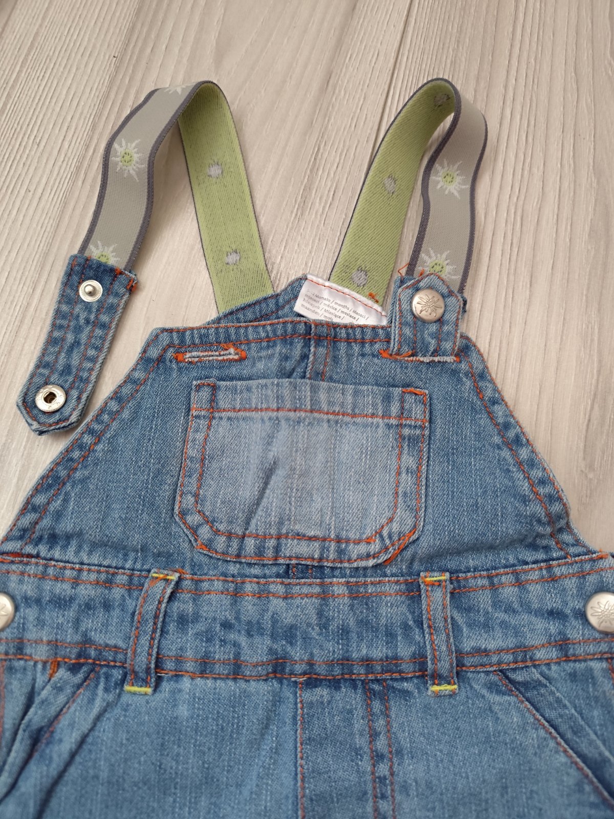 Baby rifle vel 80 unisex, traky-gumicka a zapinanie na cvoky, bocne zapinanie na cvoky, vrecka vpredu aj vzadu
