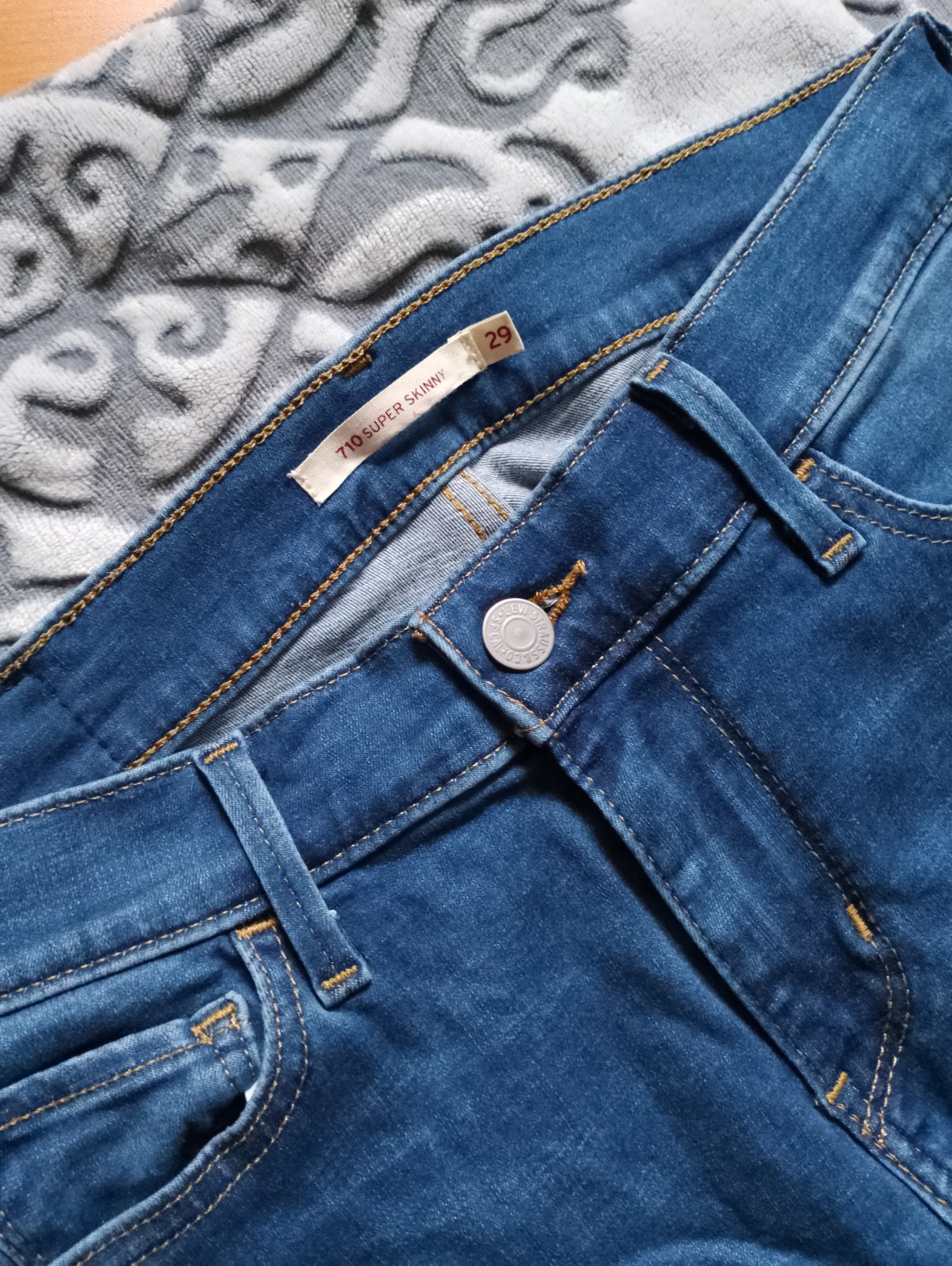Nosené v dobrom stave, jemne pružné. Veľkosť 29, pružné .