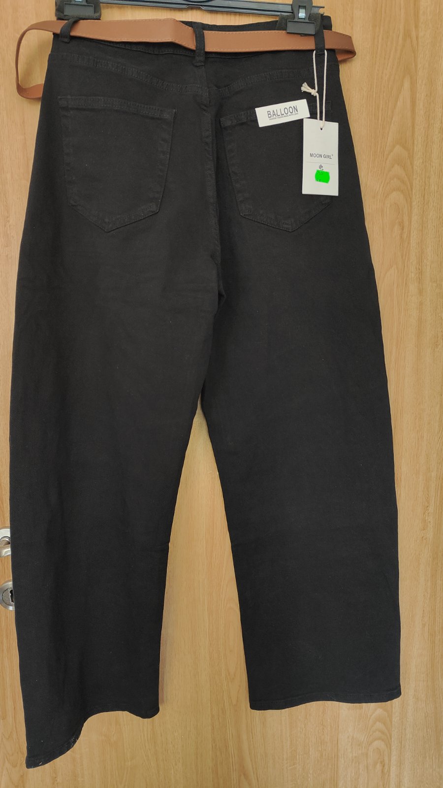 čierne rifle v super stave, veľ. podľa mňa nezodpovedá 44, pozrite rozmery: pás v kľude 39 cmx2, horný sed 25cm, dolný sed 34 cm, stehno cca 26 cm, dĺžka 105cm