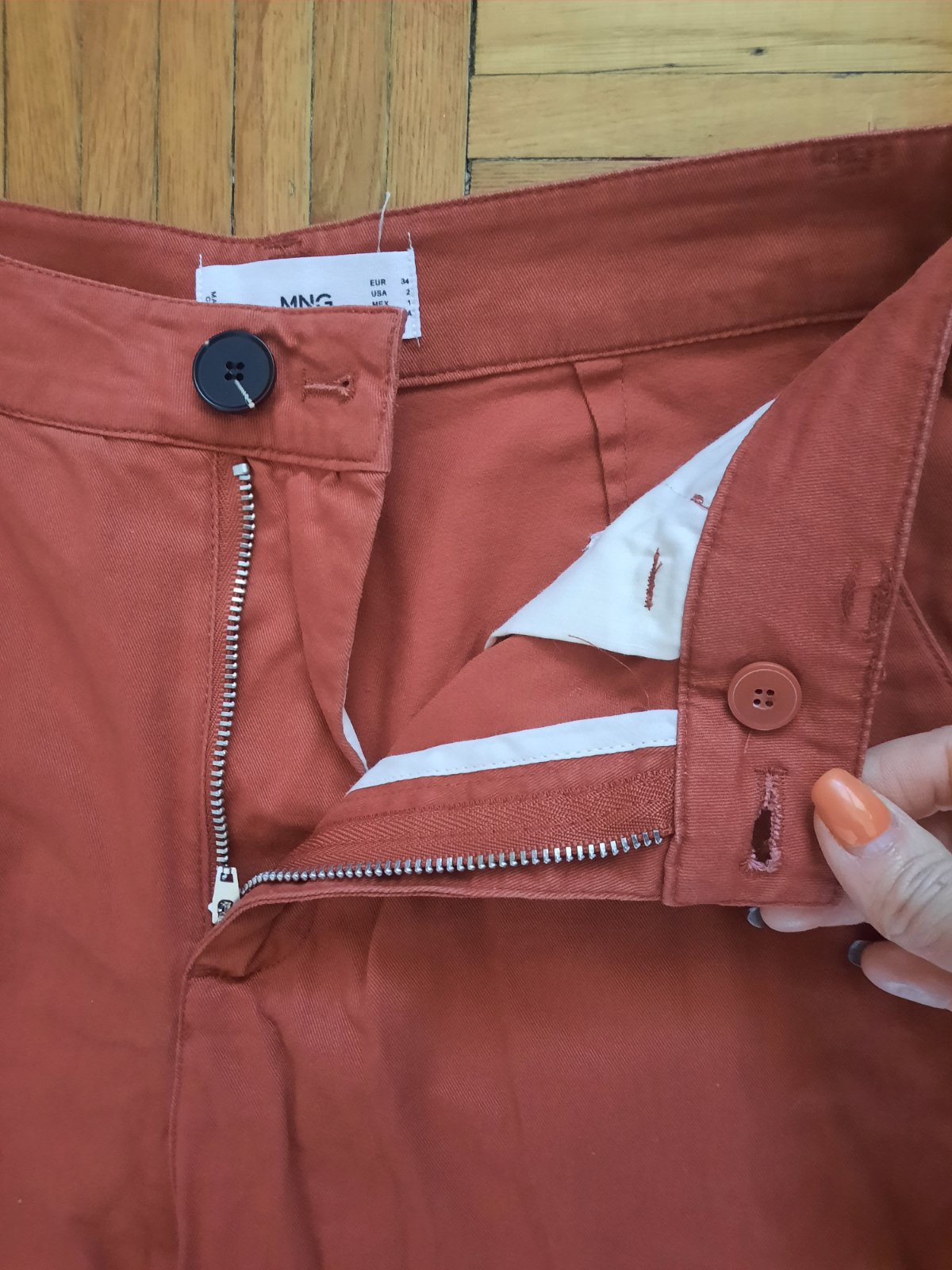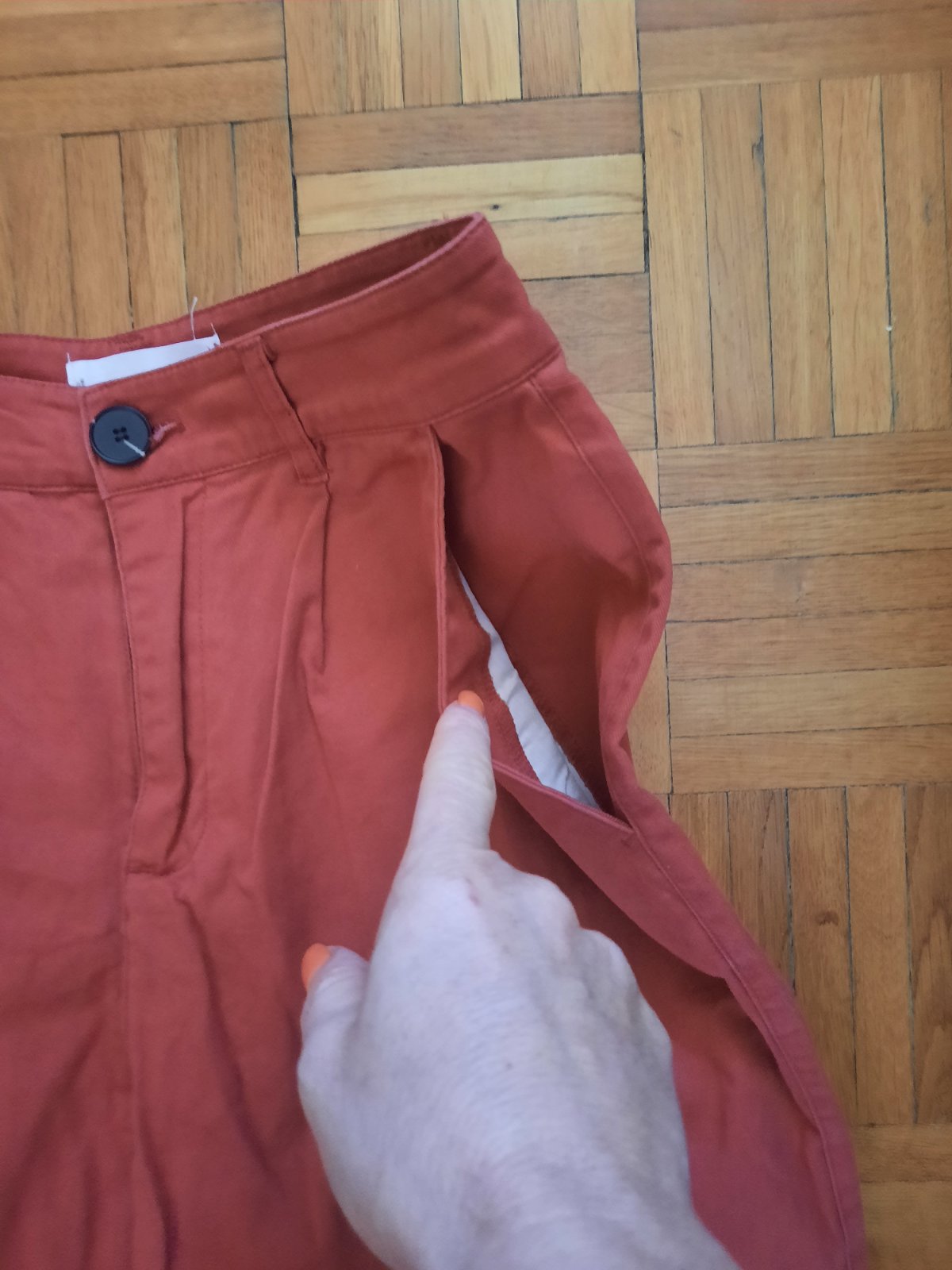 Skoro nové dámske nohavice. Farba je niečo ako tehlovo-červená. Sára sa smerom dole postupne zužuje.