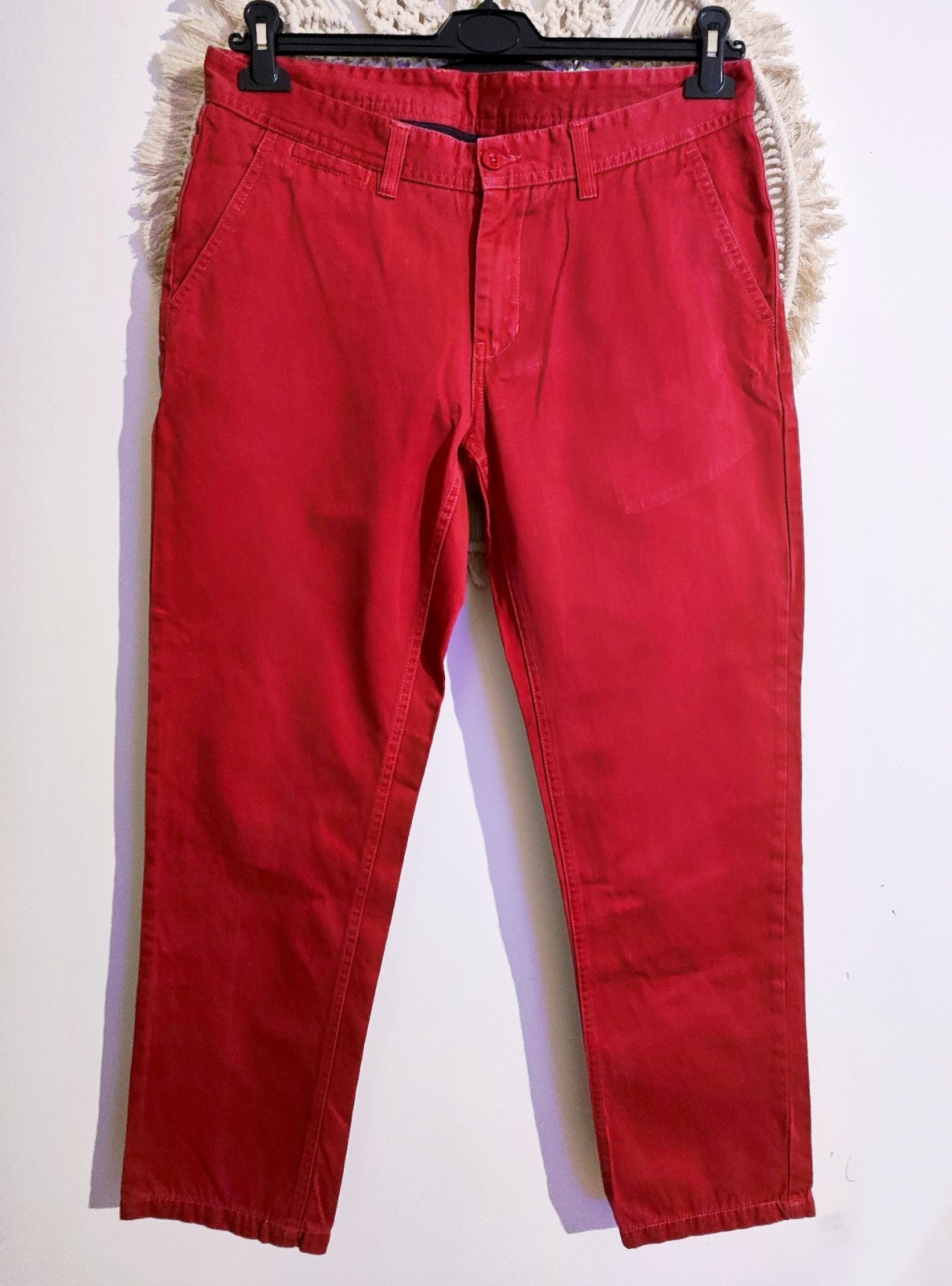 Predám nohavice-rifle Denim Color vel . L-32 , pás 46 cm , predný sed 21 cm, stehno 26 cm, celková dĺžka 91 cm, spodok 15 cm, 5 vreciek, materiál príjemný,mäkký , farba pekná červená ako na foto, b...