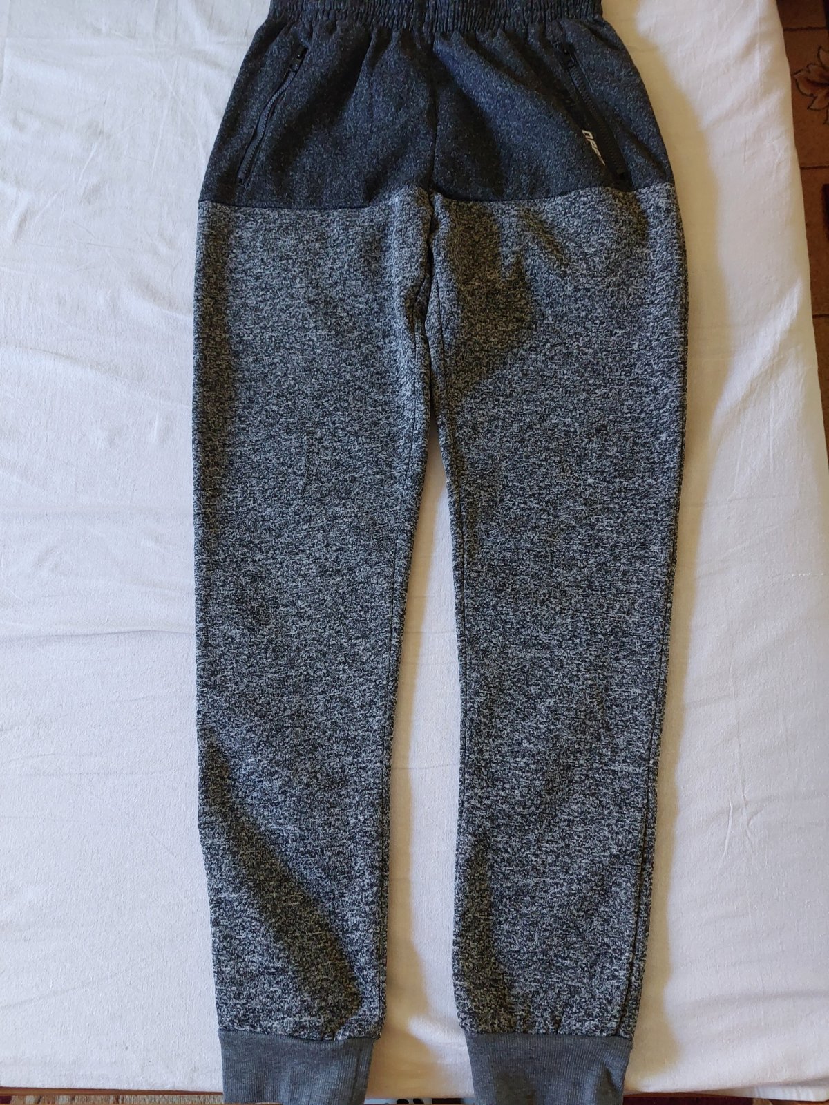 Celková dĺžka 105 cm od rozkroku nahor z predu 29, zo zadu 33, šírka v páse vkľude 33 x2, vrecká na zips, nepoškodené. U nás sa nevyužijú, sú úzke v páse.
