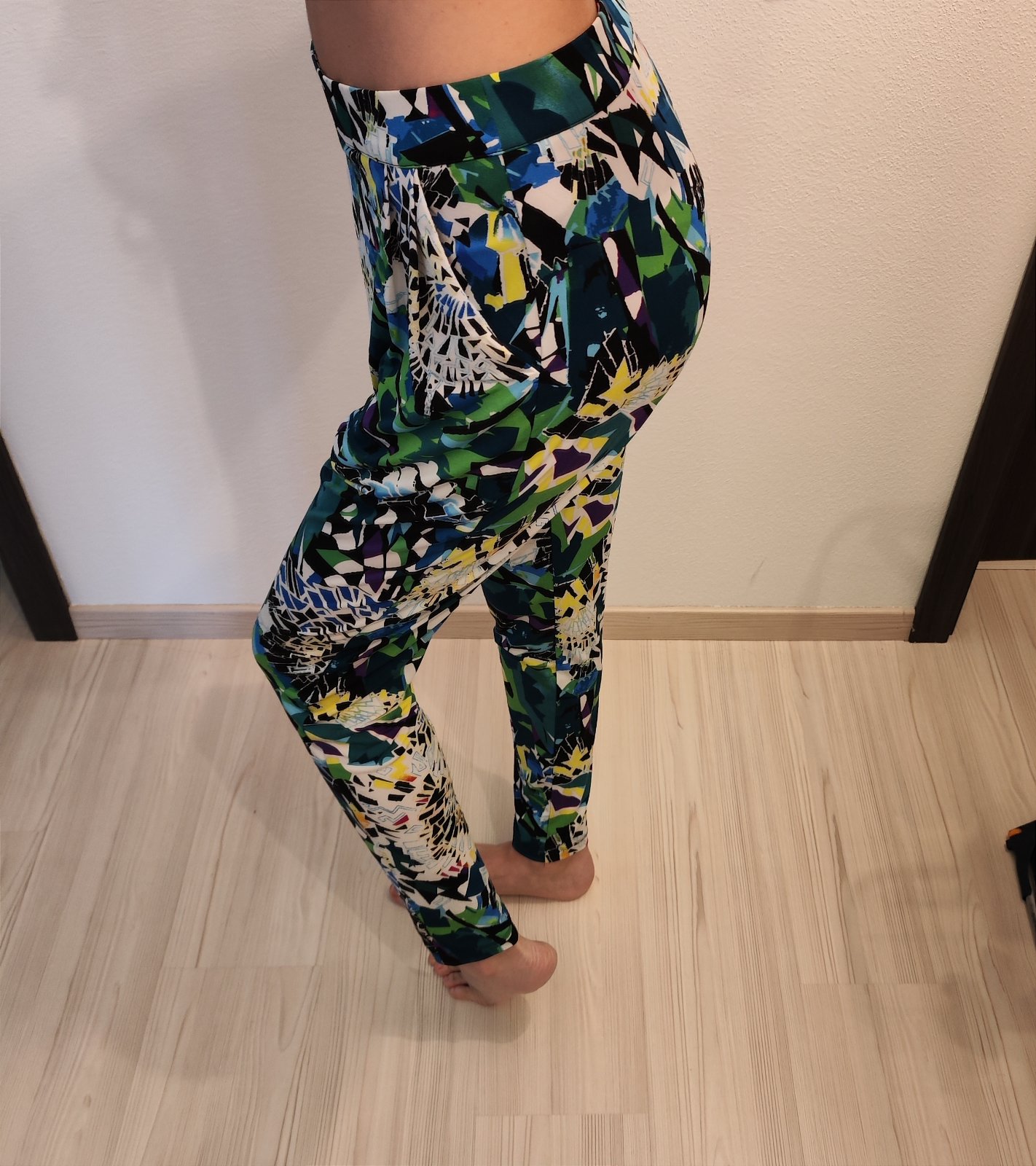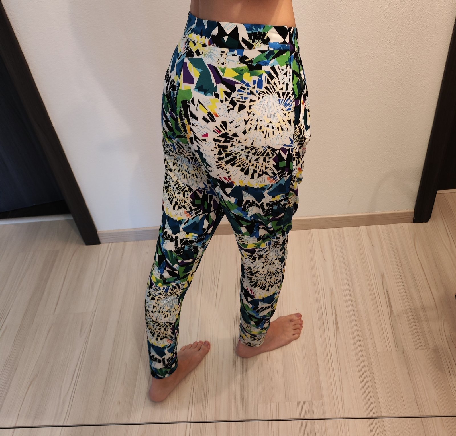 Krásne farebné nohavice, príjemný materiál, veľkosť písaná 34 takže by mali sadnúť na xs-mensie s.