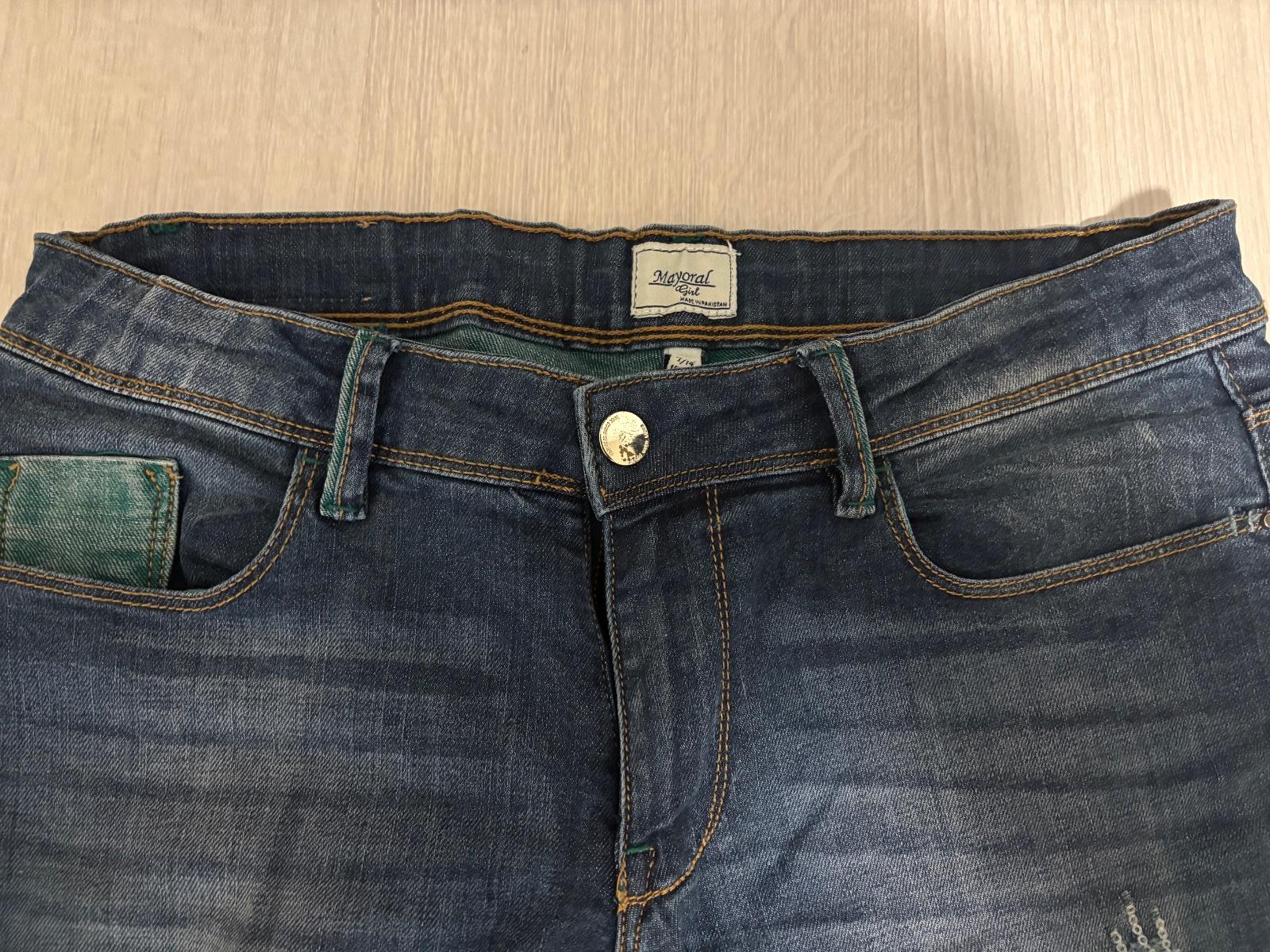 Predam dievcenske rifle, na stitku velkost 14, na vysku 157cm, 90 cm tak ako je to zahnute. Malo nosene, top stav.