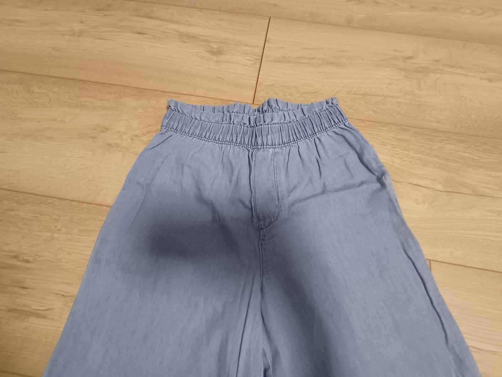 Rifle po jednom dieťati. Prvé dve sinsay, bez poškodenia. Bledomodré značka bez značky, fliačk na ľavej nohe dole,vzadu pri vrecku jemne pofŕkané- tieto DARUJEM. Rifle sú bez regulácie pásu, bez go...